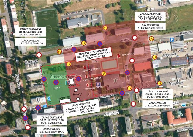 Z důvodu zajištění bezpečnosti bude nutné dočasně omezit dopravu i pohyb osob v okolí Erbenova náměstí. Prosíme občany o respektování níže uvedených opatření.