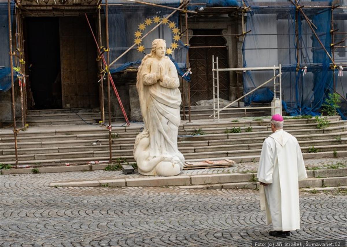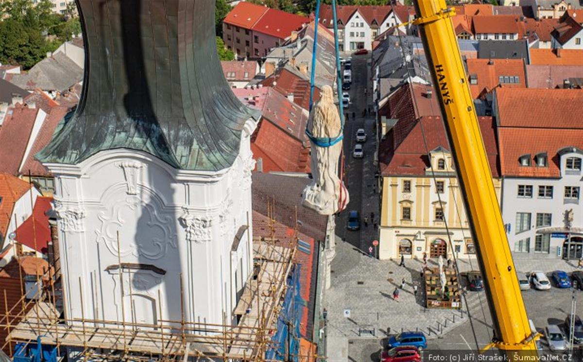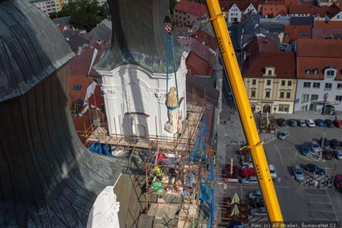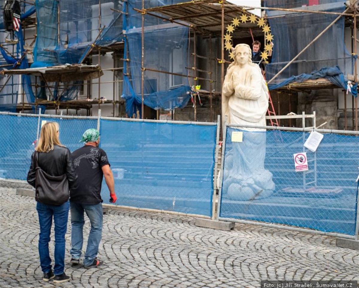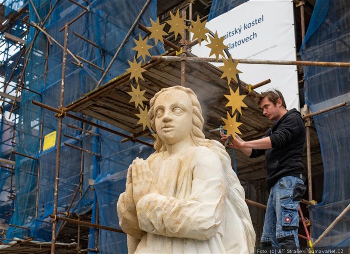 Sedmitunová Panna Marie opět dohlíží na klatovský jezuitský kostel