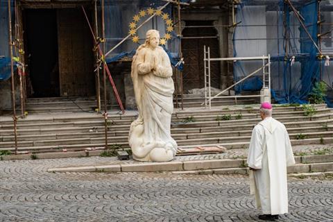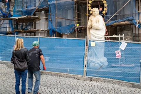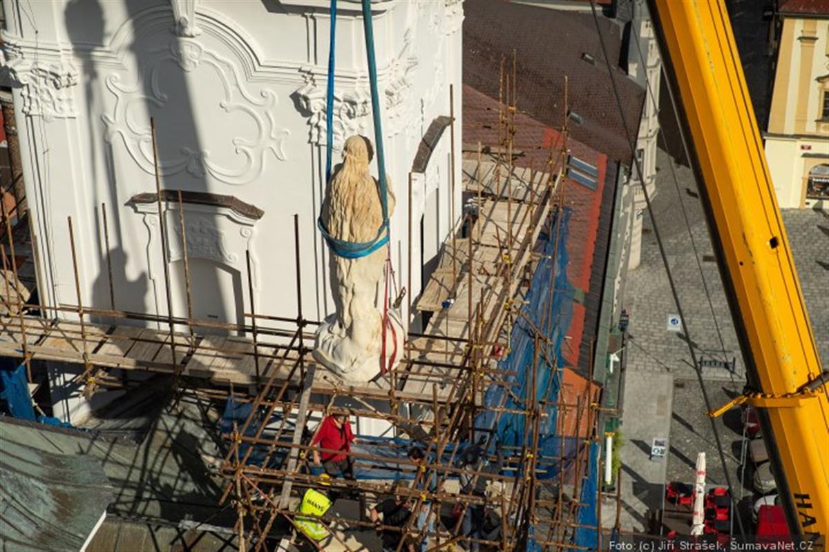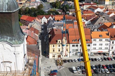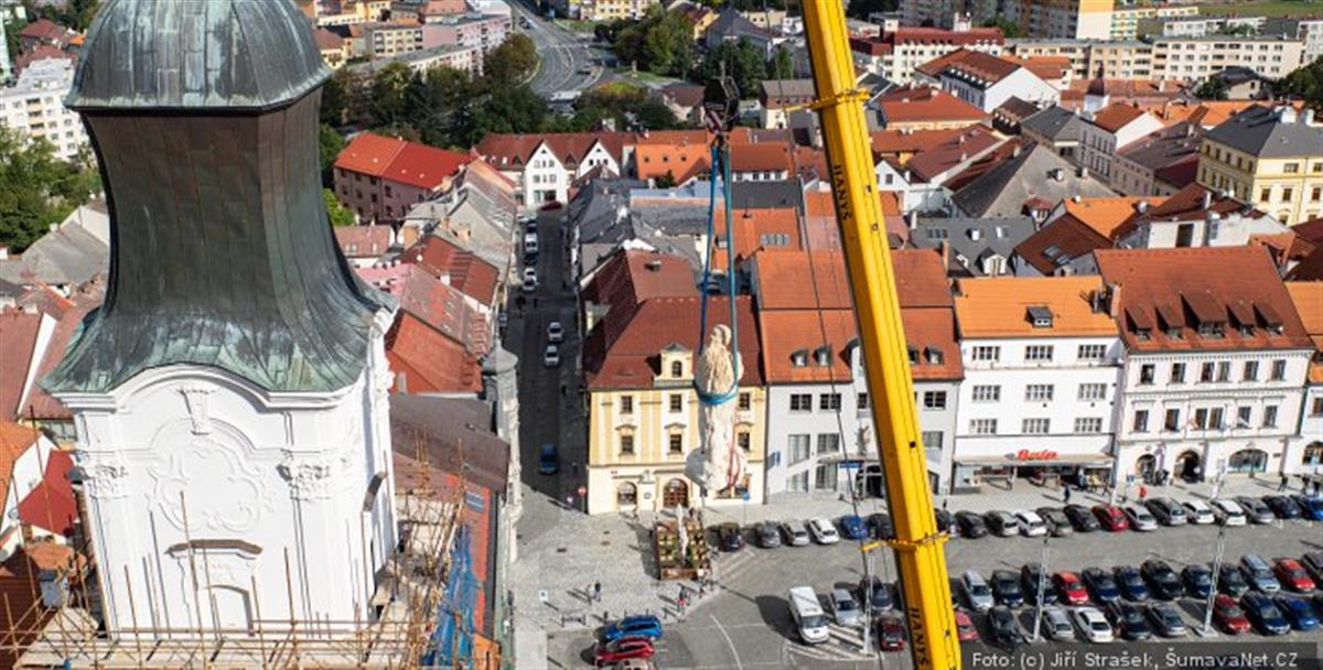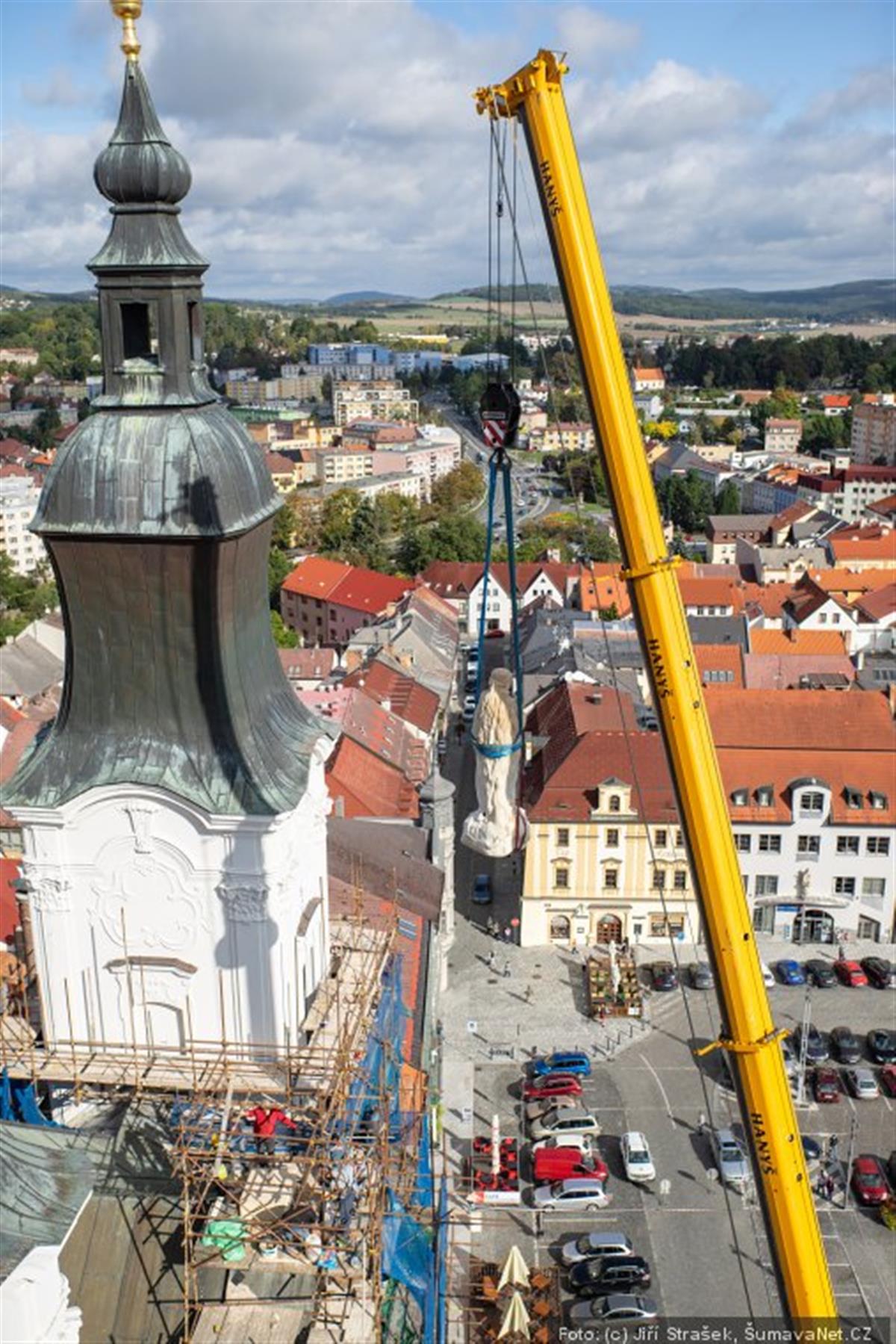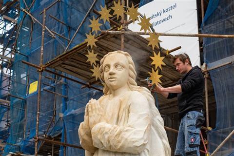 Sedmitunová Panna Marie opět dohlíží na klatovský jezuitský kostel