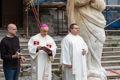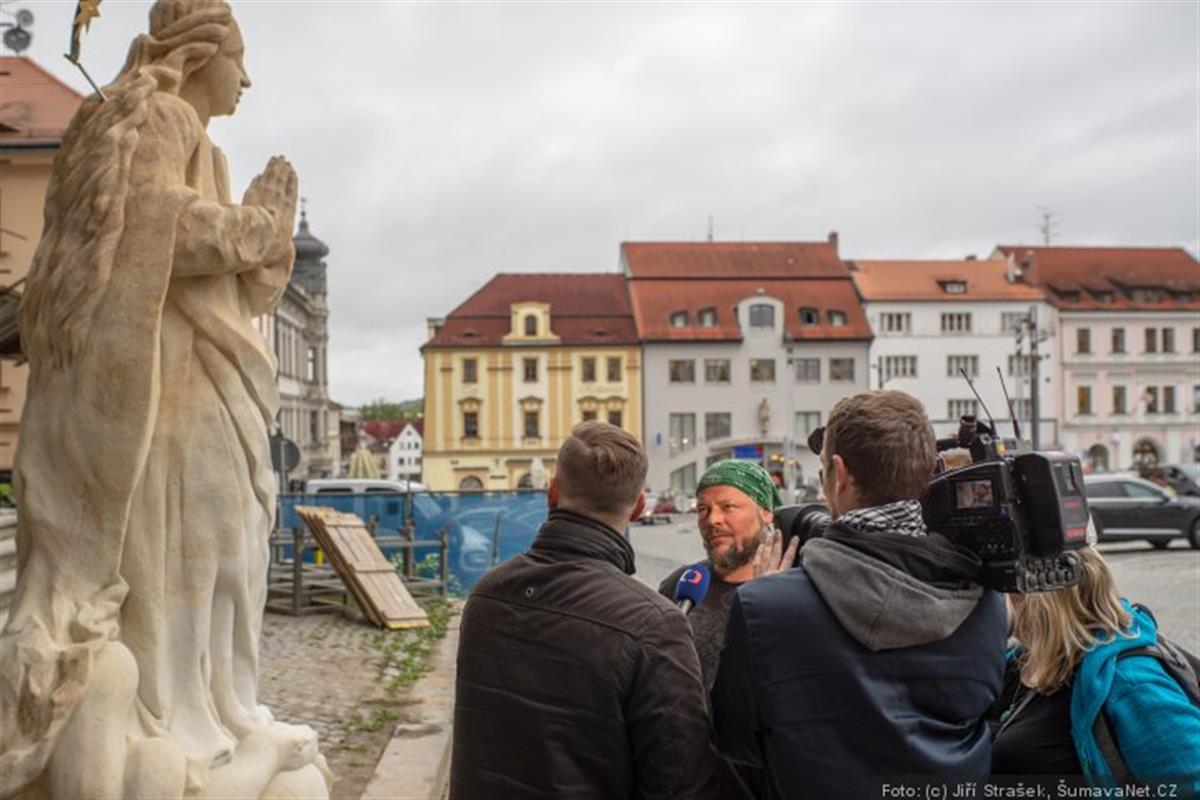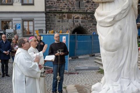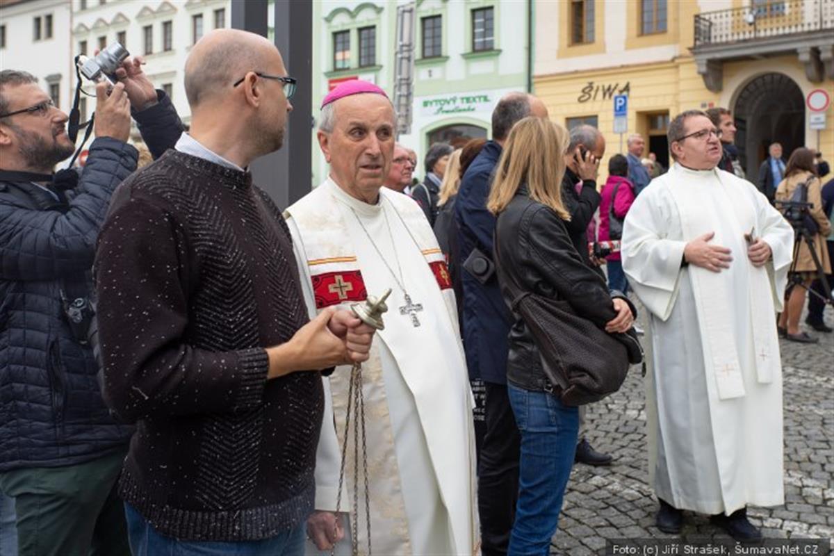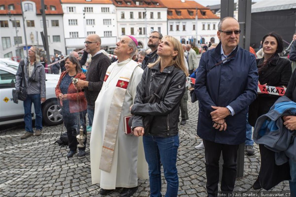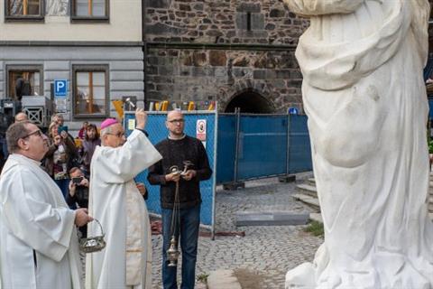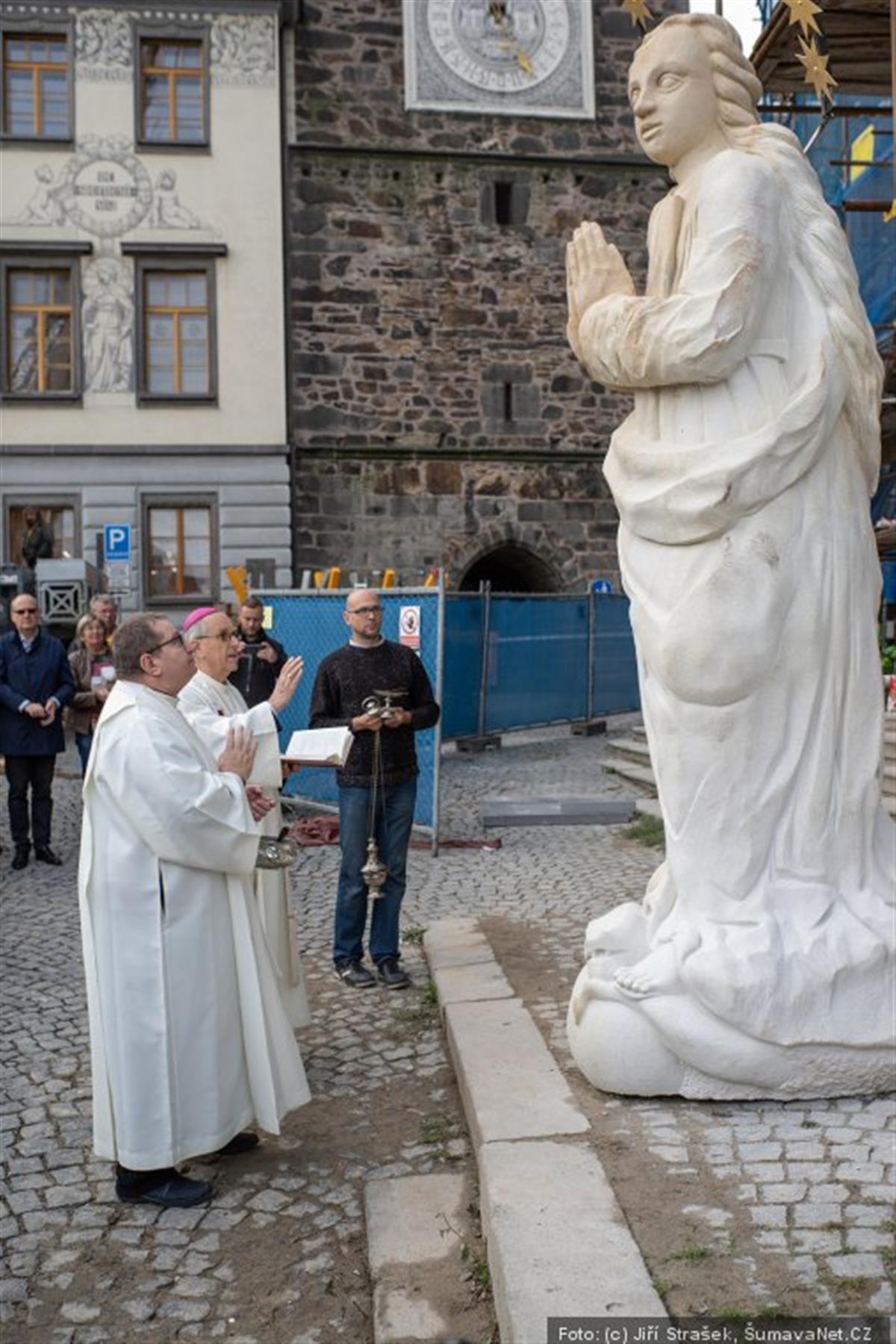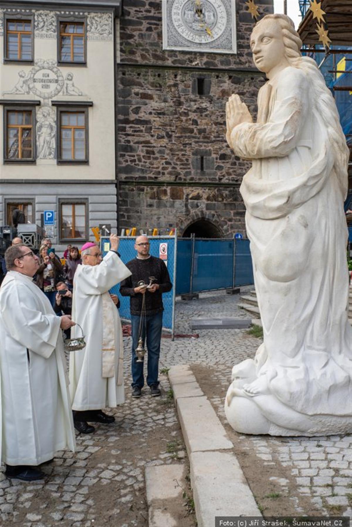 Novou sochu požehnal emeritní biskup František Radkovský, původní bude opětovně umístěna na vhodný prostor v Klatovech.