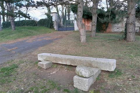 Autorem lavičky poblíž vstupní brány se symbolickým kamenem, připomínajícím kamínky na židovských hrobech, je klatovský sochař Václav Fiala.