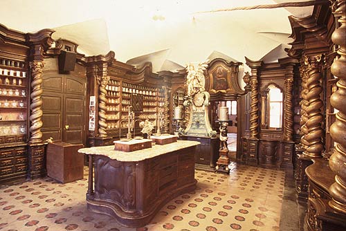 Zařízení lékárny pochází z roku 1773. Provoz lékárny se udržel až do roku 1966, poté byl interiér upraven jako lékárnické muzeum, které je celoročně přístupno veřejnosti.