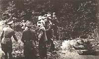 Spálený les u Lub 1942 - gestapo řadí své oběti před popravčí četu |