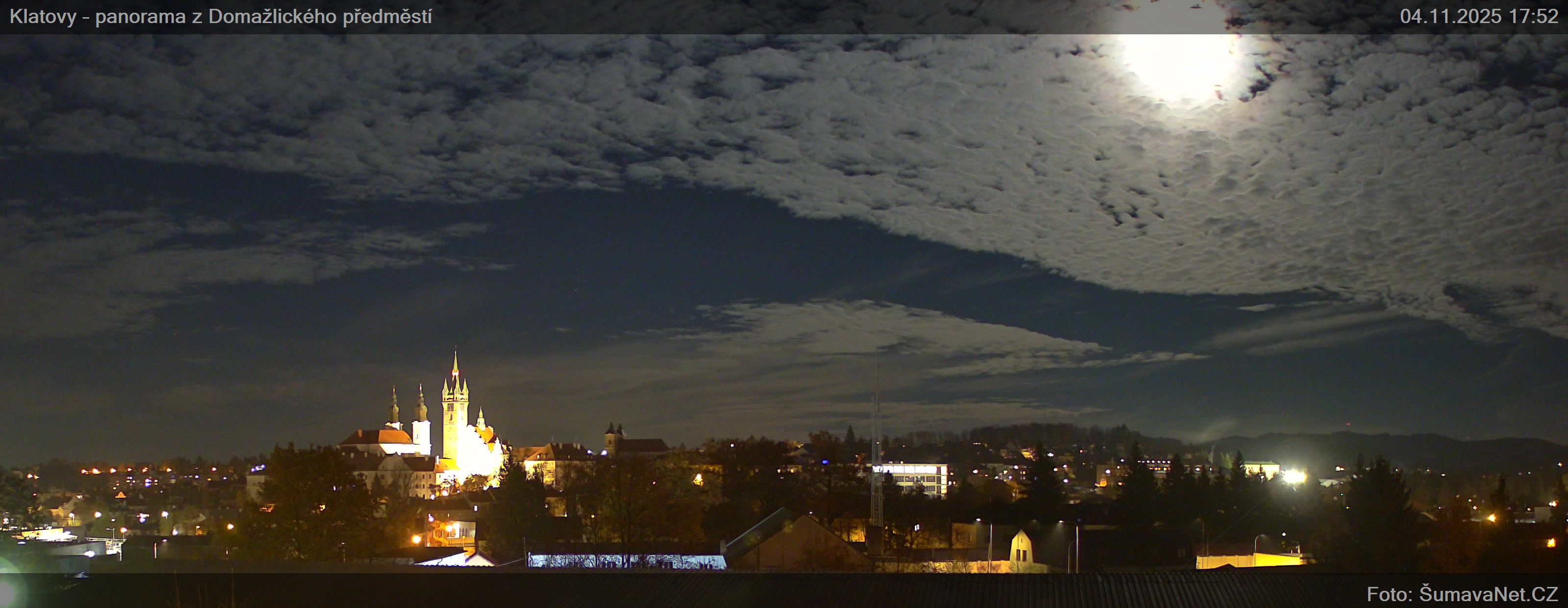 Obsah stránkyWebKameryKlatovy – náměstíVelký obrázek04.11.2025 13:19:46Vyberte čas: Archiv: Dnes 1 den 2 dny týden měsíc 100 dnů rok Panorama z Domažlického předměstíVelký obrázek04.11.2025 13:19:40Vyberte čas: Archiv: Dnes 1 den 2 dny týden měsíc 100 dnů rok Panorama – detailVelký obrázek04.11.2025 13:18:03Vyberte čas: Znovunačtení stránky - Refresh pagePoznámka: pokud se některý z obrázků nenačte celý, právě se nahrává z kamerky na internet. Klikněte prosím na odkaz - Znovunačtení stránky