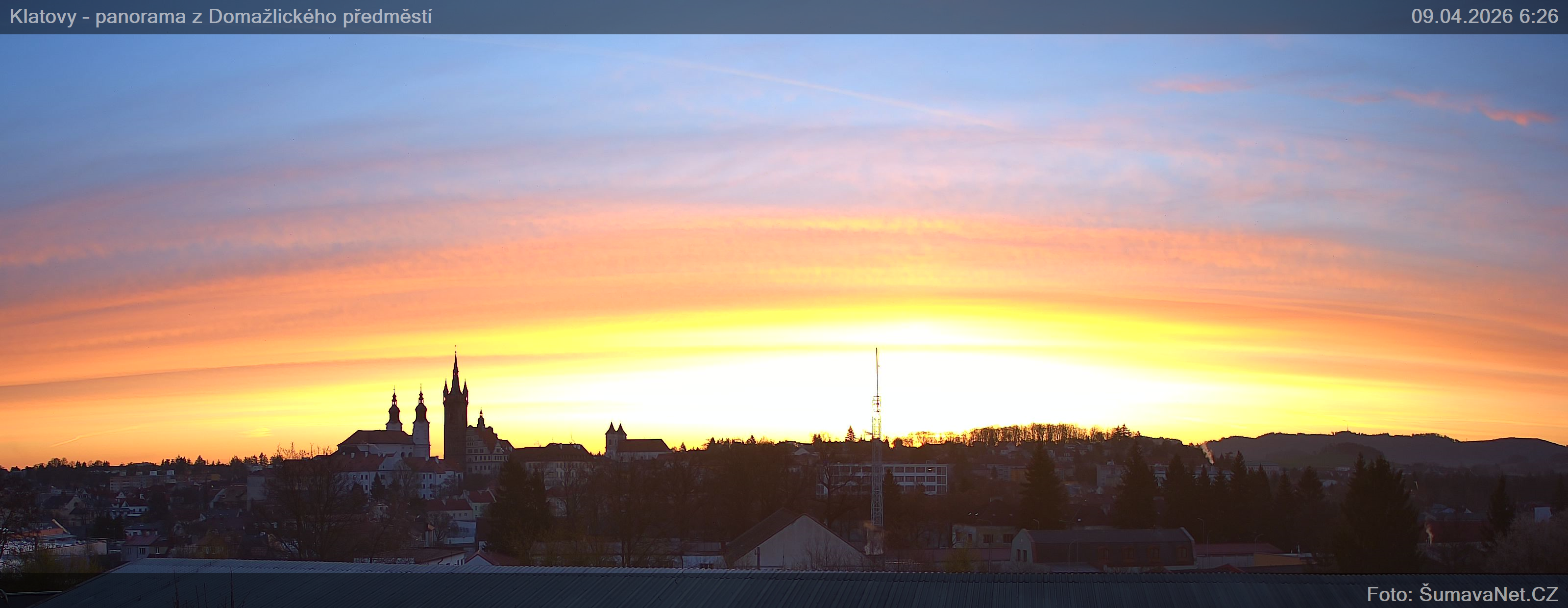 Obsah stránkyWebKameryKlatovy – náměstíVelký obrázek09.04.2026 4:53:28Vyberte čas: Archiv: Dnes 1 den 2 dny týden měsíc 100 dnů rok Panorama z Domažlického předměstíVelký obrázek09.04.2026 4:52:50Vyberte čas: Archiv: Dnes 1 den 2 dny týden měsíc 100 dnů rok Panorama – detailVelký obrázek09.04.2026 4:52:48Vyberte čas: Znovunačtení stránky - Refresh pagePoznámka: pokud se některý z obrázků nenačte celý, právě se nahrává z kamerky na internet. Klikněte prosím na odkaz - Znovunačtení stránky