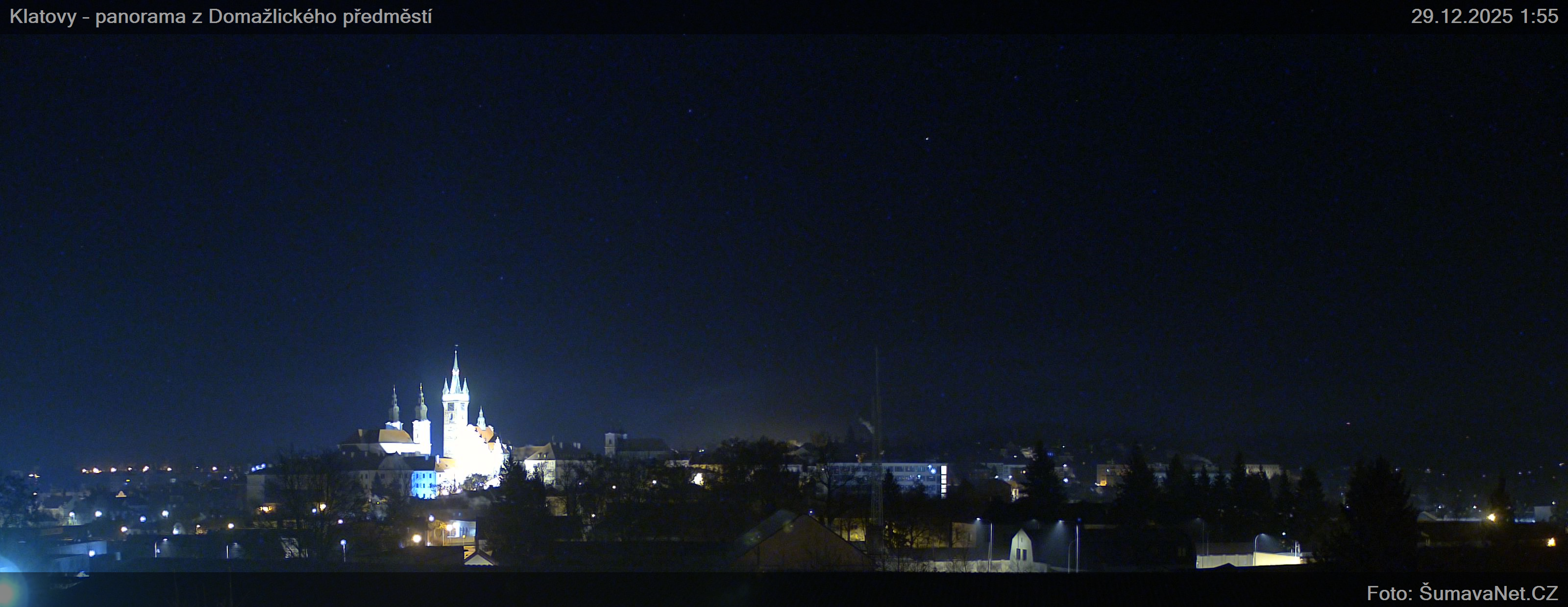 Obsah stránkyWebKameryKlatovy – náměstíVelký obrázek28.12.2025 23:27:43Vyberte čas: Archiv: Dnes 1 den 2 dny týden měsíc 100 dnů rok Panorama z Domažlického předměstíVelký obrázek28.12.2025 23:26:30Vyberte čas: Archiv: Dnes 1 den 2 dny týden měsíc 100 dnů rok Panorama – detailVelký obrázek28.12.2025 23:26:28Vyberte čas: Znovunačtení stránky - Refresh pagePoznámka: pokud se některý z obrázků nenačte celý, právě se nahrává z kamerky na internet. Klikněte prosím na odkaz - Znovunačtení stránky