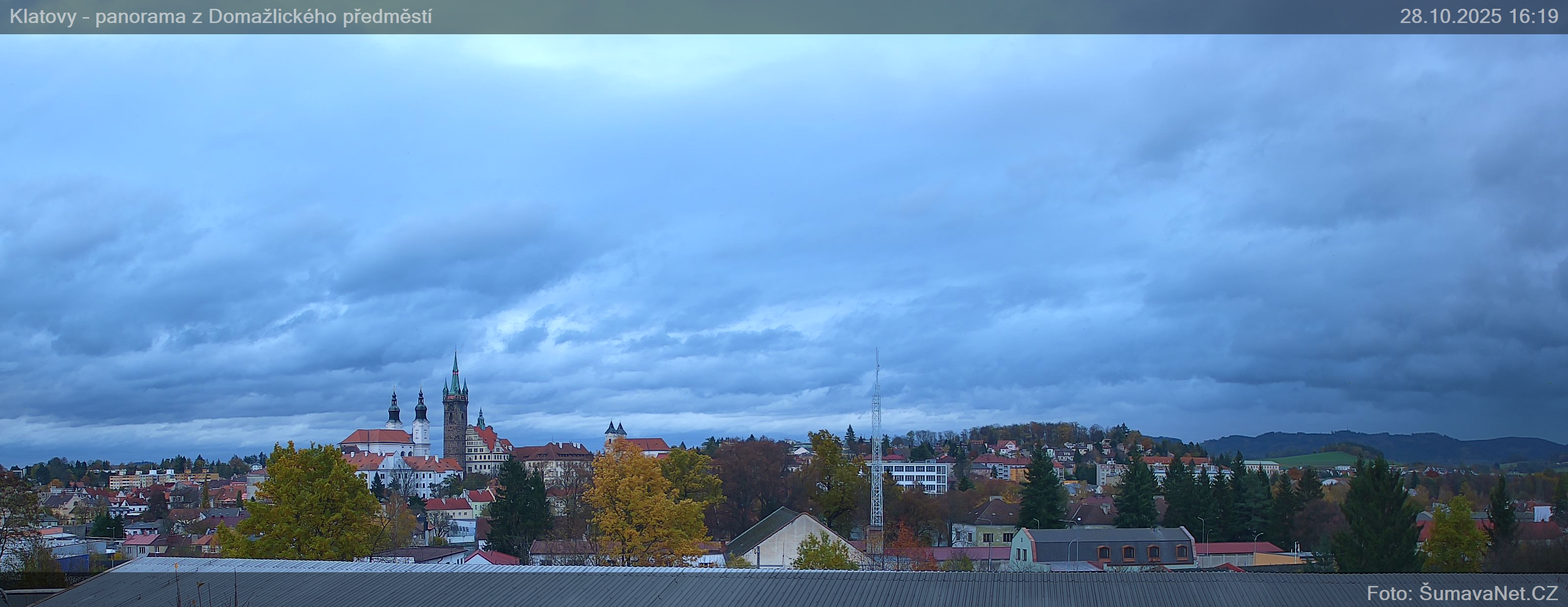 Obsah stránkyWebKameryKlatovy – náměstíVelký obrázek28.10.2025 13:50:22Vyberte čas: Archiv: Dnes 1 den 2 dny týden měsíc 100 dnů rok Panorama z Domažlického předměstíVelký obrázek28.10.2025 13:49:48Vyberte čas: Archiv: Dnes 1 den 2 dny týden měsíc 100 dnů rok Panorama – detailVelký obrázek28.10.2025 13:50:11Vyberte čas: Znovunačtení stránky - Refresh pagePoznámka: pokud se některý z obrázků nenačte celý, právě se nahrává z kamerky na internet. Klikněte prosím na odkaz - Znovunačtení stránky
