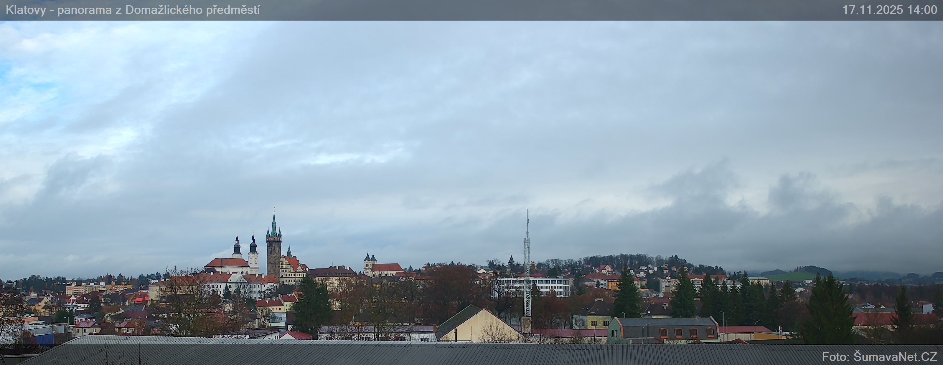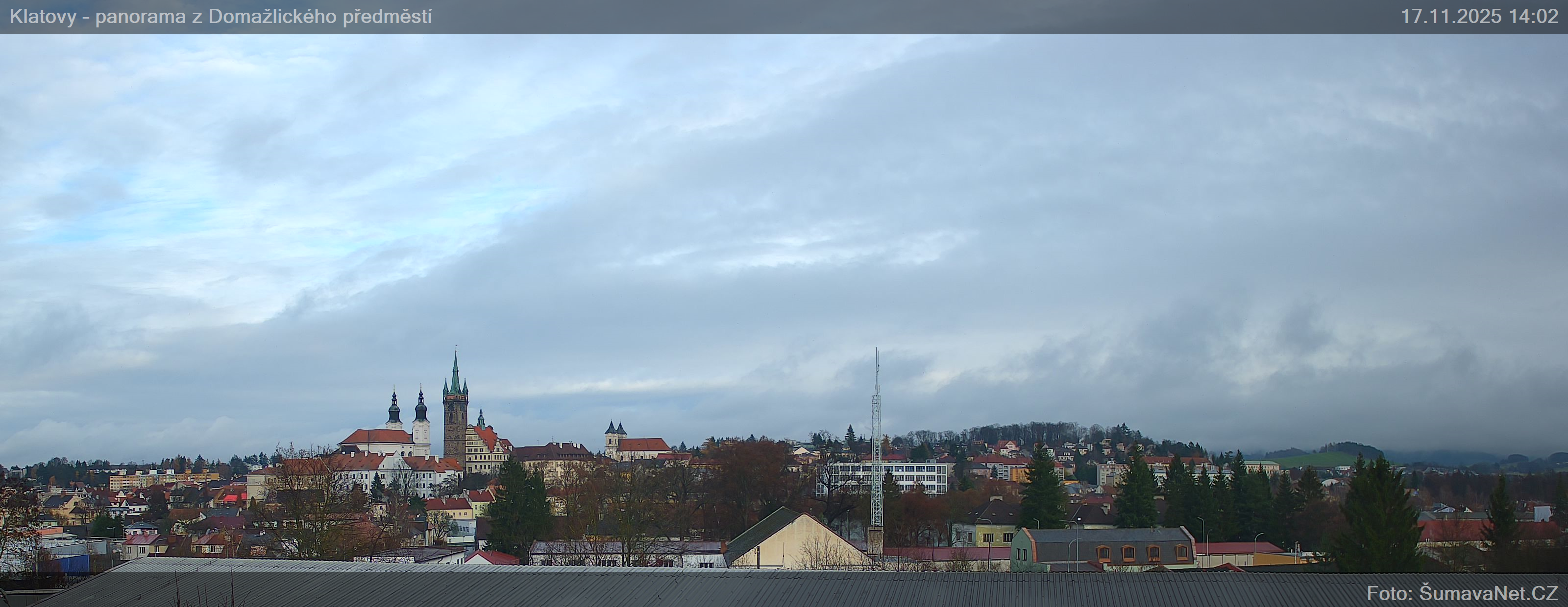 PageinhaltWebCamsKlatovy – náměstíGroßes Bild17.11.2025 11:43:29Wählen sie Zeit: Archiv: Heute 1 Tag 2 Tage Woche Monat 100 Tage Jahr Panorama z Domažlického předměstíGroßes Bild17.11.2025 11:42:54Wählen sie Zeit: Archiv: Heute 1 Tag 2 Tage Woche Monat 100 Tage Jahr Panorama – detailGroßes Bild17.11.2025 11:43:18Wählen sie Zeit: Refresh pageVermerk: Ladet sich eines der Bilder nicht komplett, so wird dieses gerade von der WebCam ins Internet übertragen. Klicken Sie bitte auf den Link - Refresh page