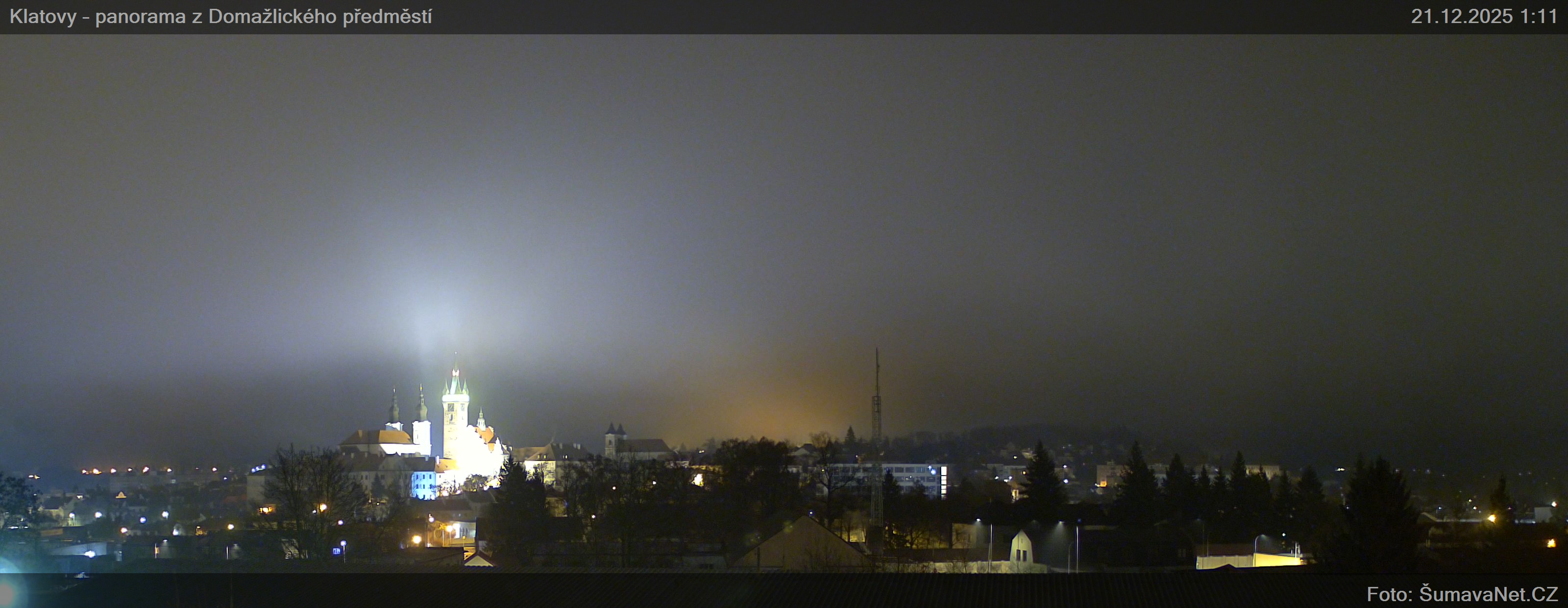 Page contentWebCamsKlatovy – náměstíBig Image20.12.2025 23:11:18Select time: Archive: Today 1 day 2 days Week Month 100 days Year Panorama z Domažlického předměstíBig Image20.12.2025 23:10:00Select time: Archive: Today 1 day 2 days Week Month 100 days Year Panorama – detailBig Image20.12.2025 23:10:05Select time: Refresh page