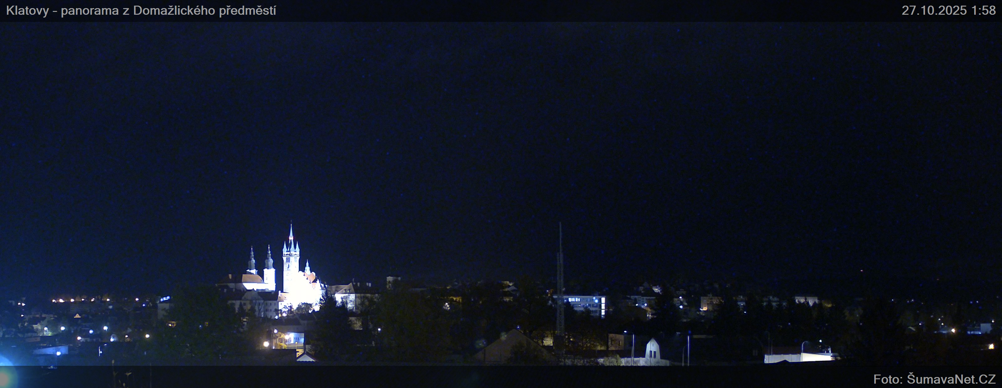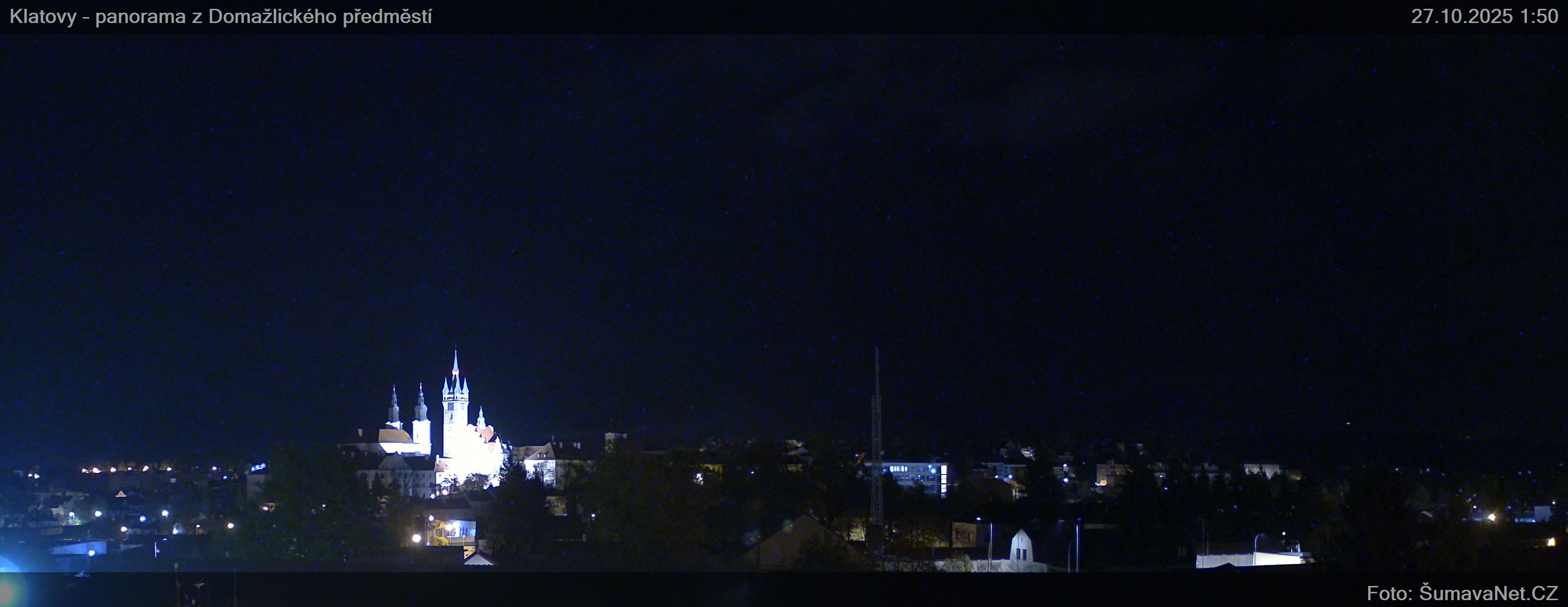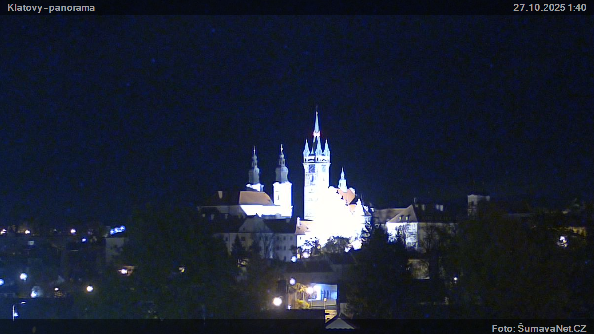 Page contentWebCamsKlatovy – náměstíBig Image26.10.2025 22:31:17Select time: Archive: Today 1 day 2 days Week Month 100 days Year Panorama z Domažlického předměstíBig Image26.10.2025 22:30:50Select time: Archive: Today 1 day 2 days Week Month 100 days Year Panorama – detailBig Image26.10.2025 22:31:15Select time: Refresh page