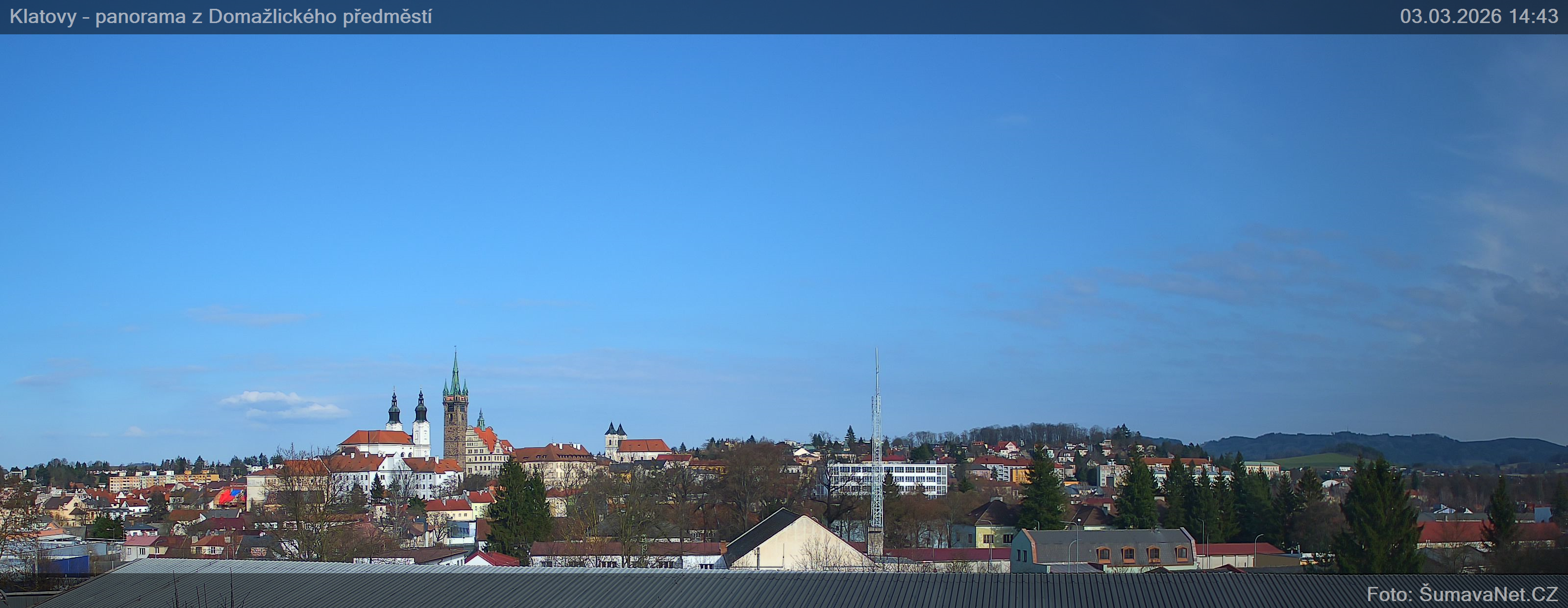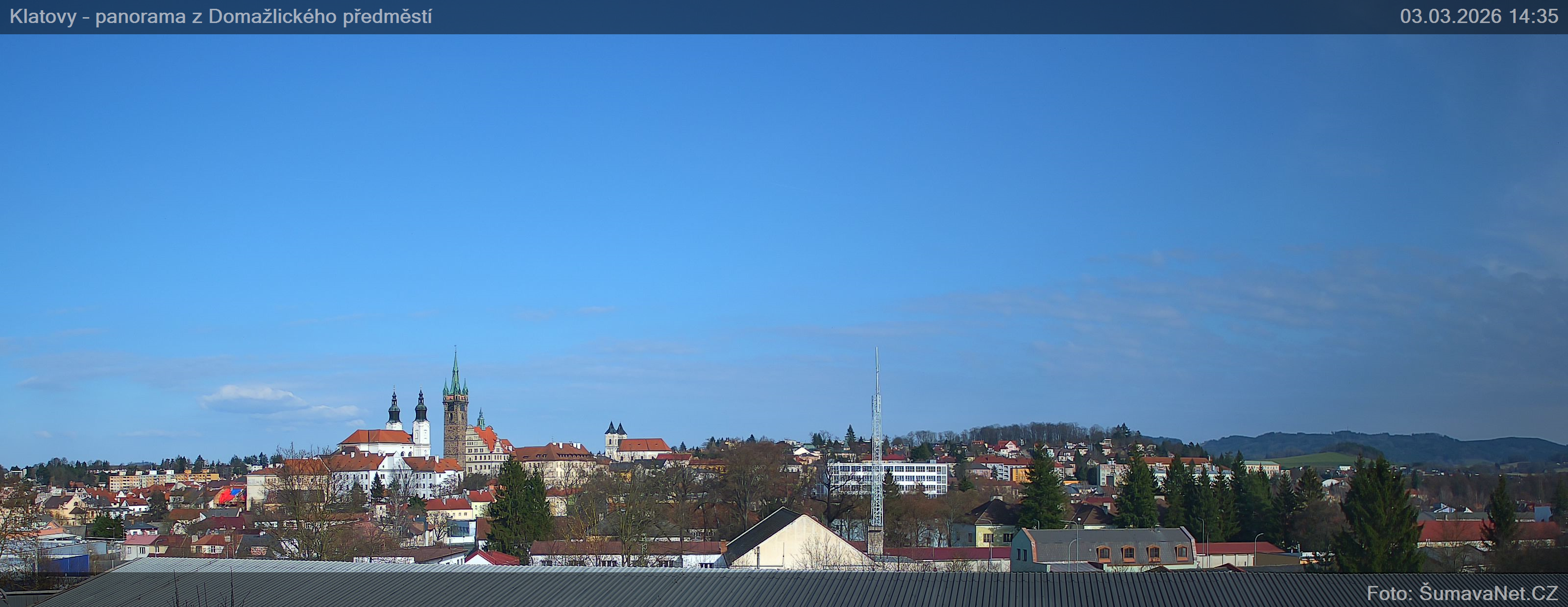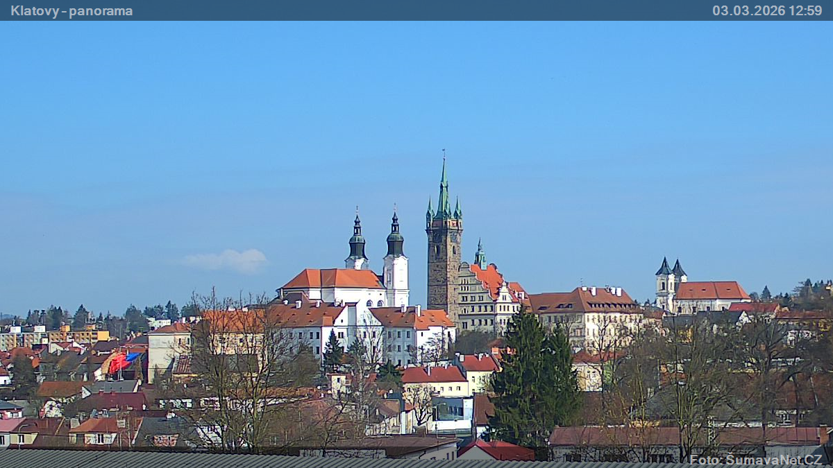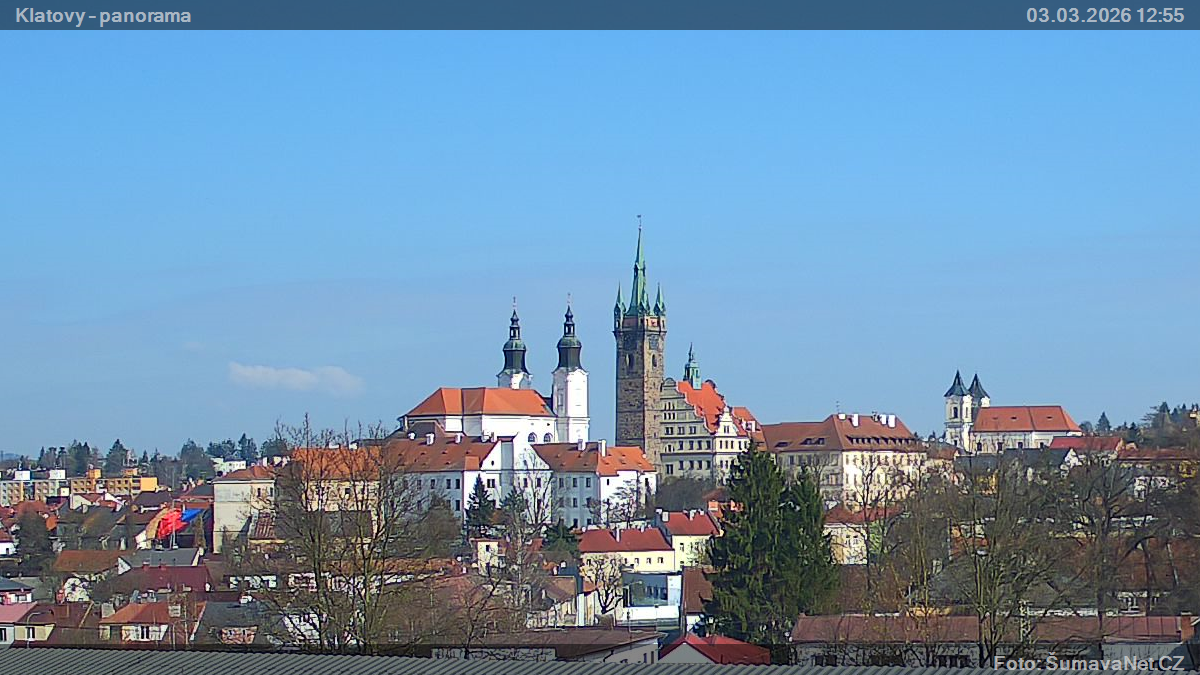 PageinhaltWebCamsKlatovy – náměstíGroßes Bild03.03.2026 11:12:11Wählen sie Zeit: Archiv: Heute 1 Tag 2 Tage Woche Monat 100 Tage Jahr Panorama z Domažlického předměstíGroßes Bild03.03.2026 11:10:21Wählen sie Zeit: Archiv: Heute 1 Tag 2 Tage Woche Monat 100 Tage Jahr Panorama – detailGroßes Bild03.03.2026 11:10:27Wählen sie Zeit: Refresh pageVermerk: Ladet sich eines der Bilder nicht komplett, so wird dieses gerade von der WebCam ins Internet übertragen. Klicken Sie bitte auf den Link - Refresh page