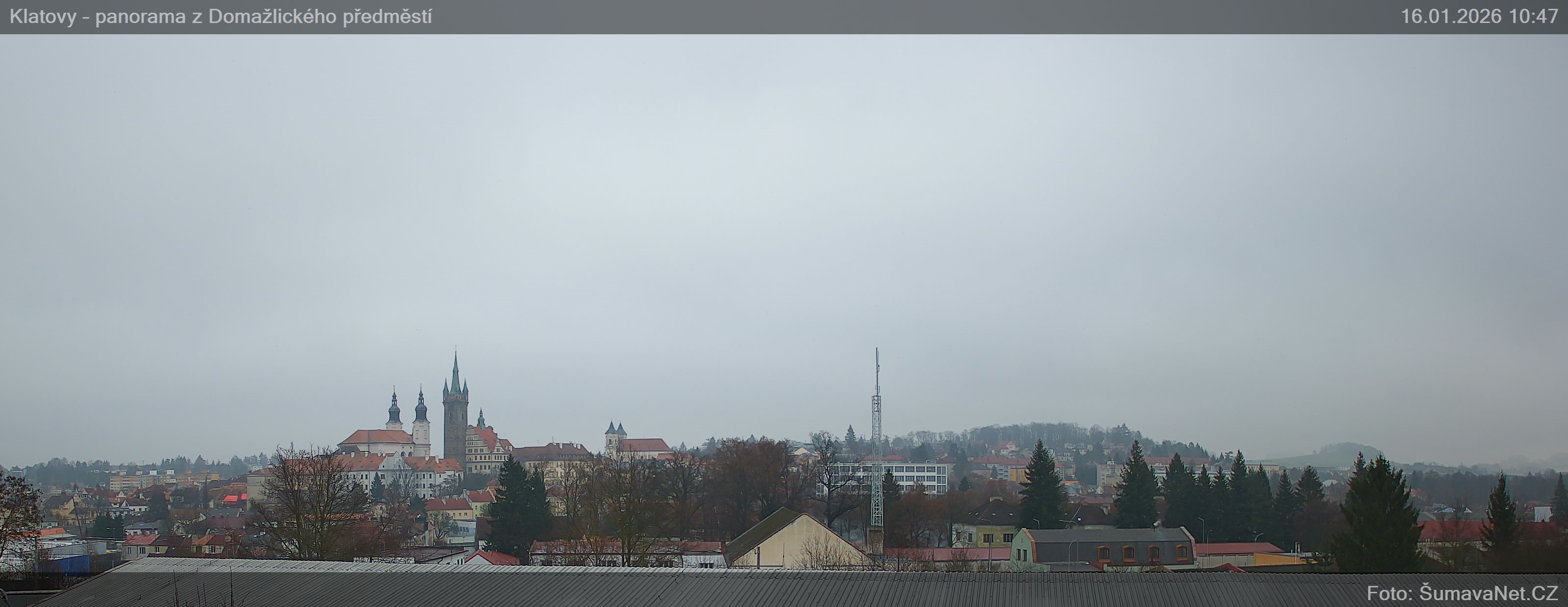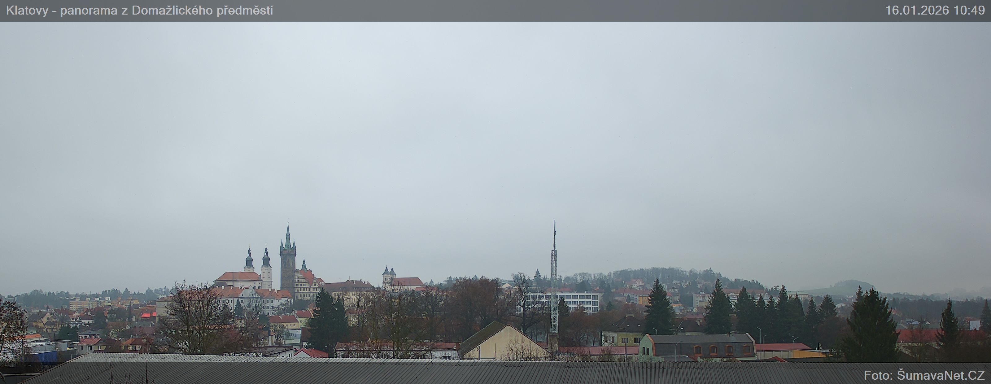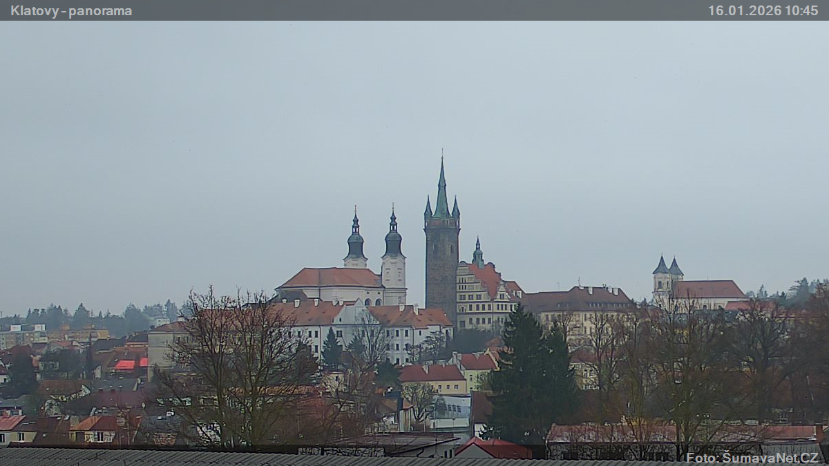 PageinhaltWebCamsKlatovy – náměstíGroßes Bild16.01.2026 9:25:41Wählen sie Zeit: Archiv: Heute 1 Tag 2 Tage Woche Monat 100 Tage Jahr Panorama z Domažlického předměstíGroßes Bild16.01.2026 9:24:48Wählen sie Zeit: Archiv: Heute 1 Tag 2 Tage Woche Monat 100 Tage Jahr Panorama – detailGroßes Bild16.01.2026 9:24:47Wählen sie Zeit: Refresh pageVermerk: Ladet sich eines der Bilder nicht komplett, so wird dieses gerade von der WebCam ins Internet übertragen. Klicken Sie bitte auf den Link - Refresh page