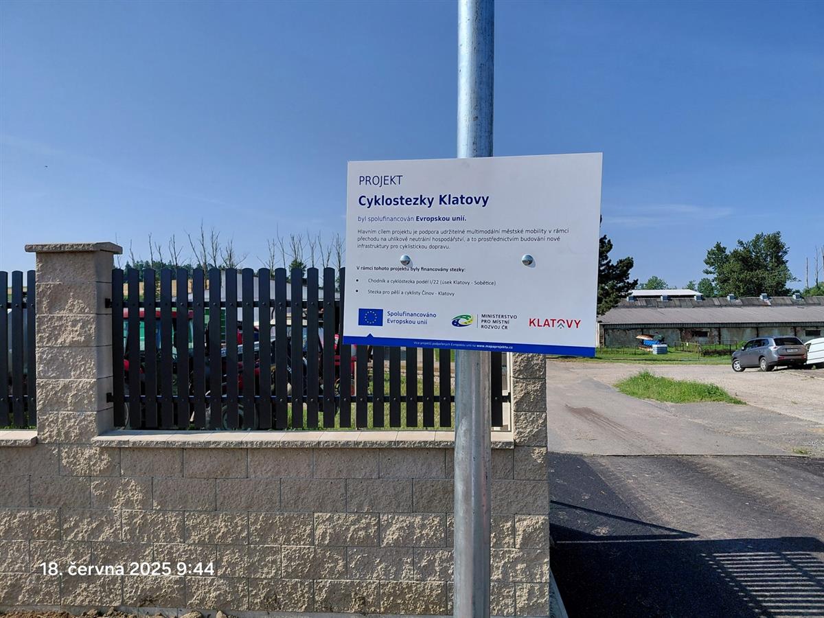 🛠️ Projekt je součástí dotačního programu „Cyklostezky Klatovy“ a byl spolufinancován Evropskou unií