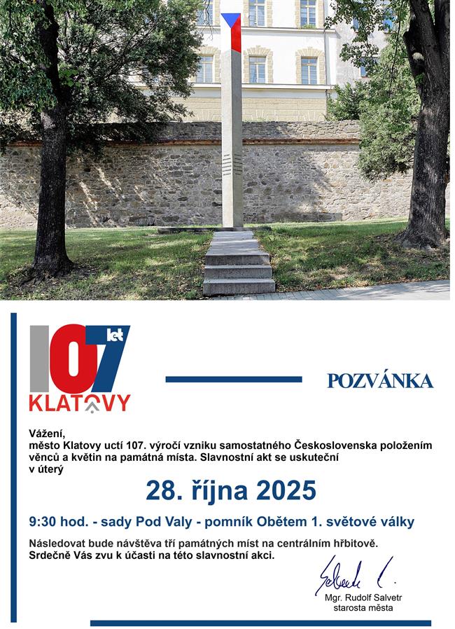 Obsah stránkyPozvánku na pietní akt u příležitosti 107. výročí vzniku samostatného Československa - 28.10.2025SubmenuNávrat na předchozí stránku
