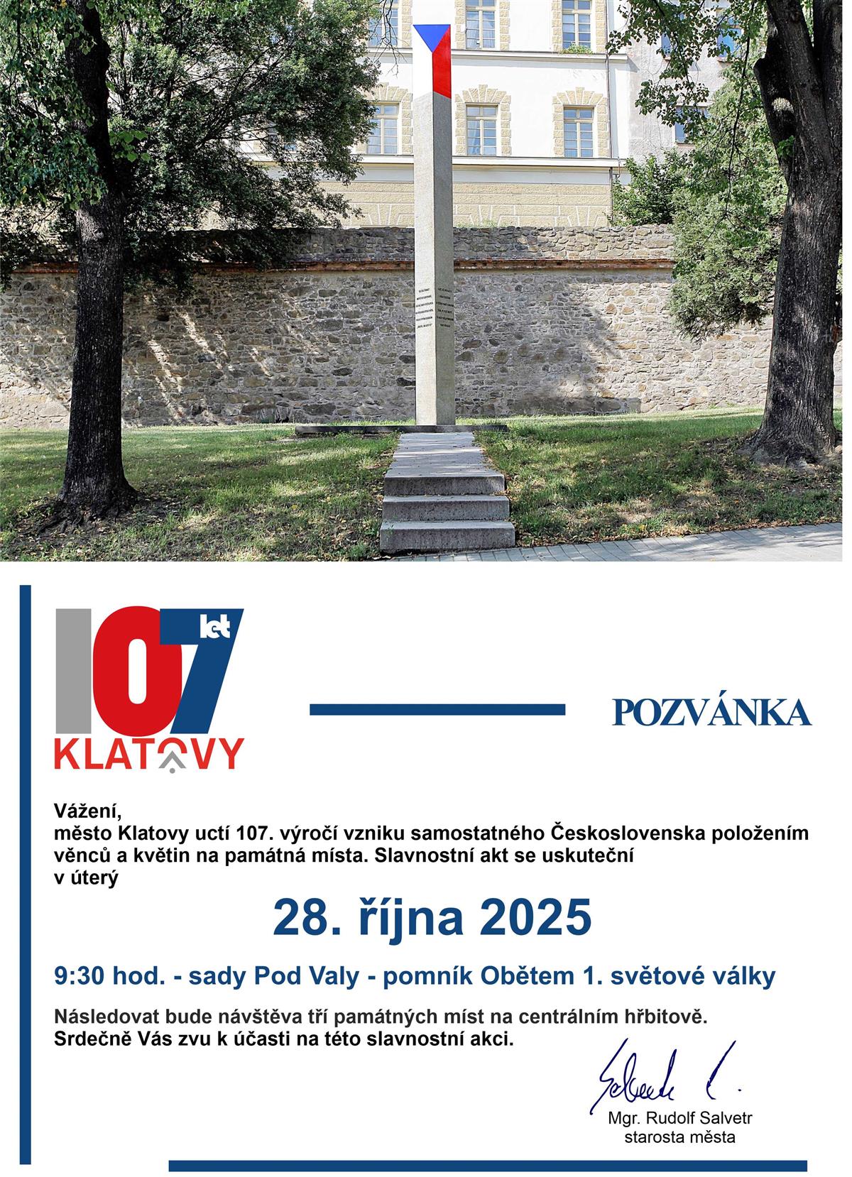 Obsah stránkyPozvánku na pietní akt u příležitosti 107. výročí vzniku samostatného Československa - 28.10.2025SubmenuNávrat na předchozí stránku