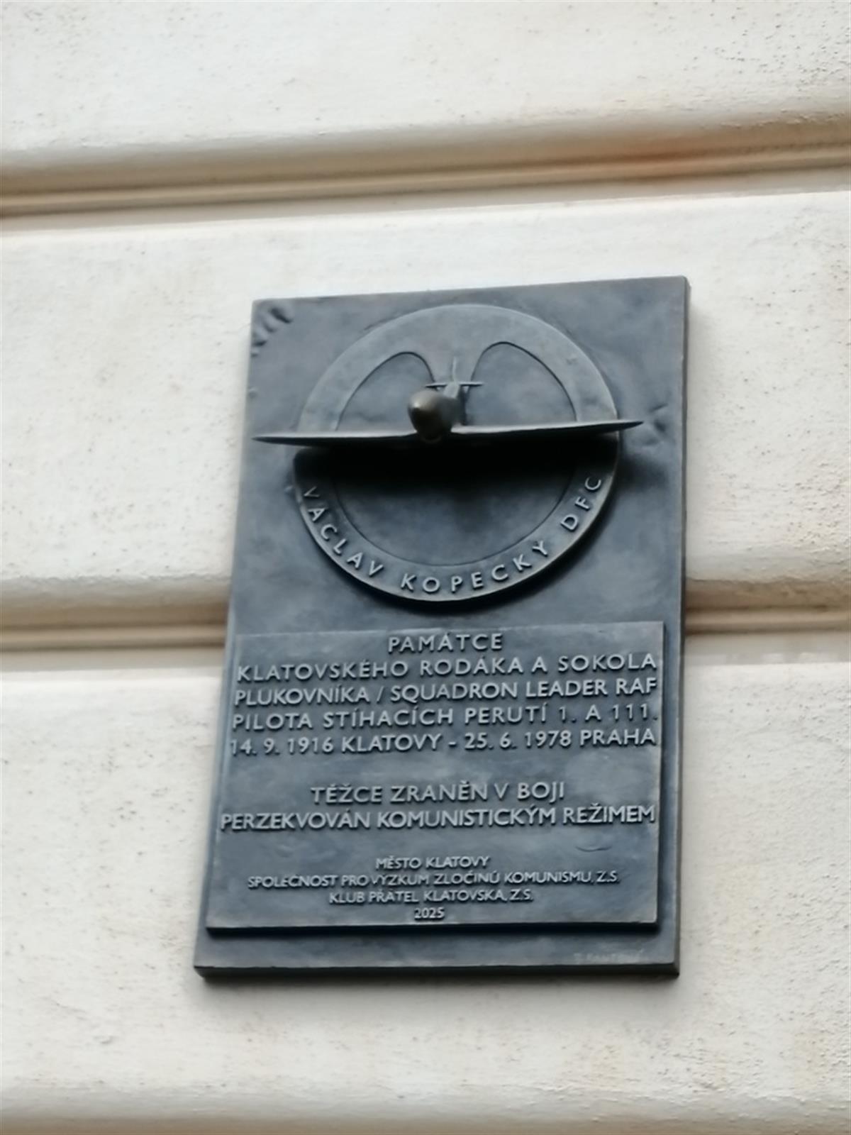 Pamětní deska připomíná nejen hrdinství plukovníka Václava Kopeckého 💪, ale i tragické osudy celé generace československých letců, kteří bojovali za svobodu své země 🇨🇿. Po okupaci Československa se Václav Kopecký zapojil do našeho zahraničního letectva, ve Velké Británii působil u slavných 1. a 111. stíhací perutě RAF. ✈️