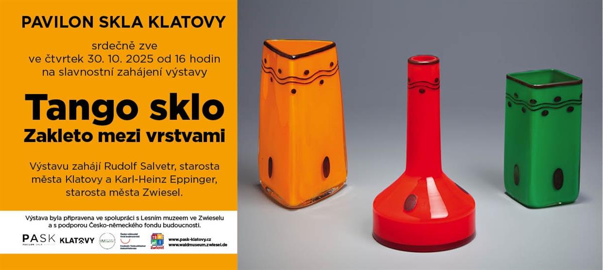 V Pavilonu skla PASK v Klatovech byla ve čtvrtek vernisáží zahájena výstava Tango sklo - Zakleto mezi vrstvami. Tu spolu s PASKem spolupořádá Waldmuseum Zwiesel. Výstavu finančně podpořil Česko-německý fond budoucnosti.
