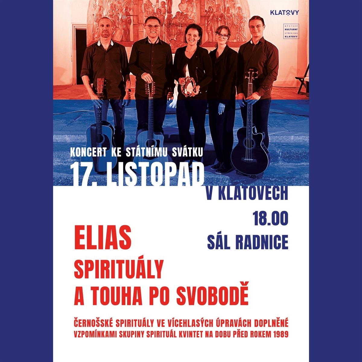 🎶 18:00 – Koncert ke státnímu svátku: ELIAS – SPIRITUÁLY A TOUHA PO SVOBODĚ