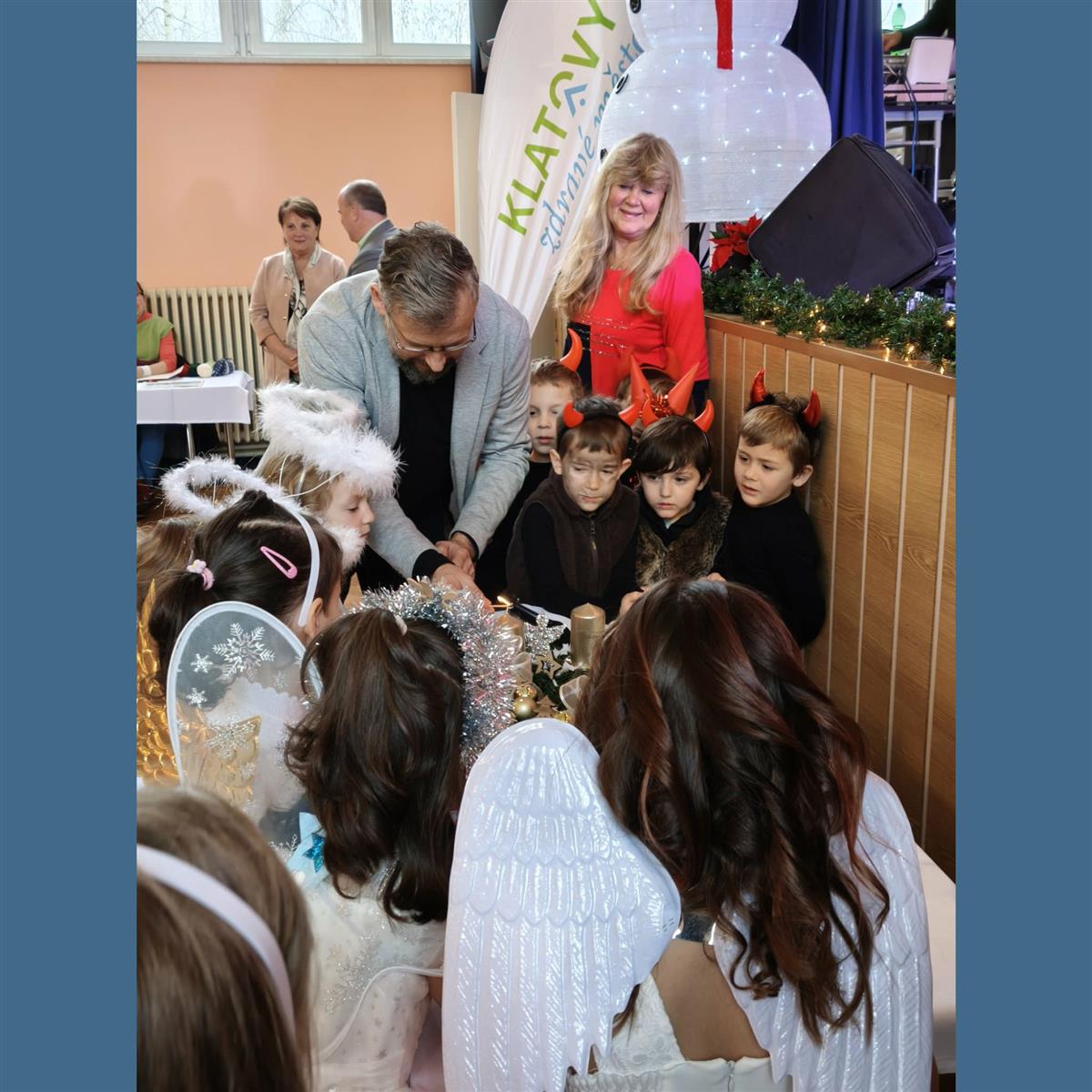 Děti ze školky pak asistovaly panu místostarostovi u zapálení první svíčky na adventním věnci 🕯️. Velký potlesk sklidila taneční skupina MINI DOLLS 💃✨ a svým zpěvem potěšila Yvetta Blanarovičová 🎤.