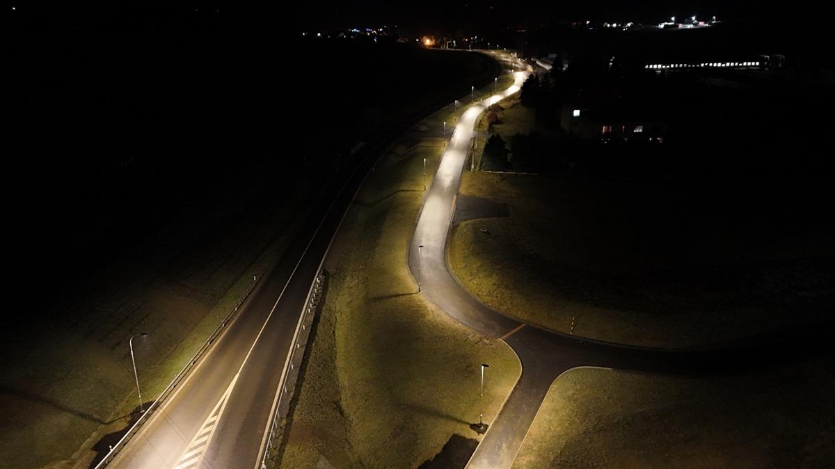 💡 Součástí stavby bylo také dobudování veřejného osvětlení městem Klatovy – osvětlení celé stezky i kruhového objezdu na přeložce je nyní v plném provozu. Díky tomu je pohyb po trase výrazně bezpečnější a komfortnější i po setmění. 🌙💡