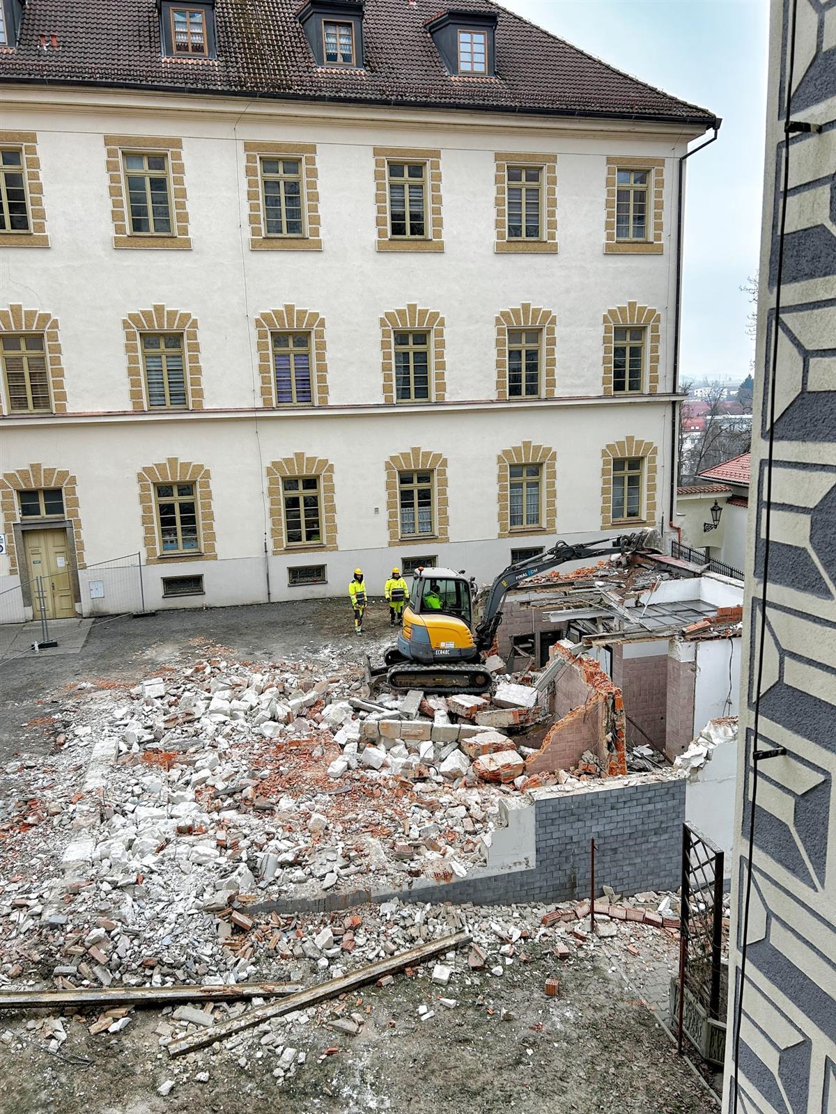 Na nádvoří klatovské radnice pokračují v těchto dnech stavební práce 👷♂️🏛️. Po zbourání původních veřejných toalet a následných úpravách zde vznikne zajímavé prostranství sloužící nejen pro setkávání a odpočinek obyvatel města i turistů 🌍🧍♀️🧍♂️, ale i jako romantické místo pro páry, které se rozhodly říct své „Ano“ ❤️💒.