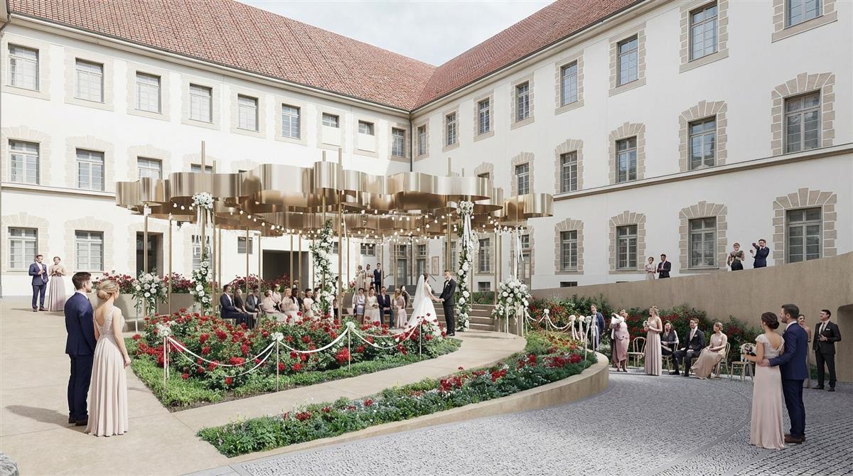 Svatební dvorek plynule naváže na revitalizované nádvoří jezuitské koleje a zvýší atraktivitu těchto prostor v centru města ✨🏙️.