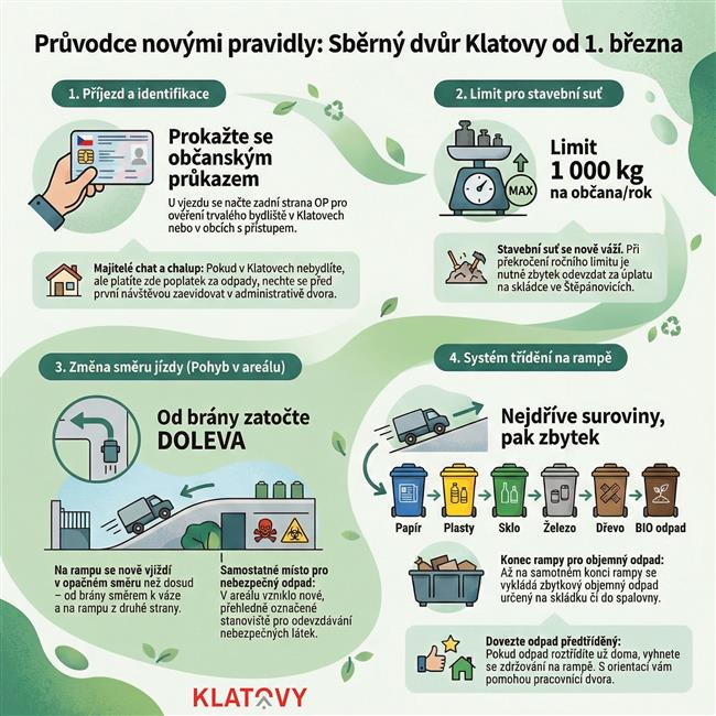 Od 1. března 2026 bude sběrný dvůr v Klatovech fungovat podle nových pravidel. Změny se týkají uspořádání areálu, provozu v něm, ale i evidence přivezených odpadů.
