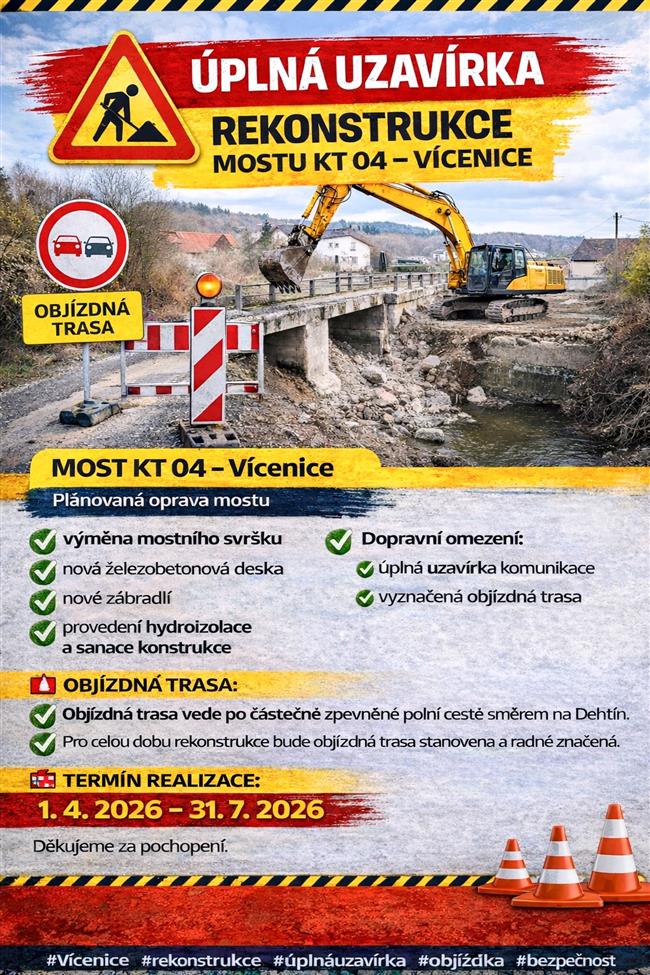 „Oprava mostu ve Vícenicích je důležitým krokem ke zvýšení bezpečnosti dopravy a zajištění dlouhodobé funkčnosti této komunikace.“