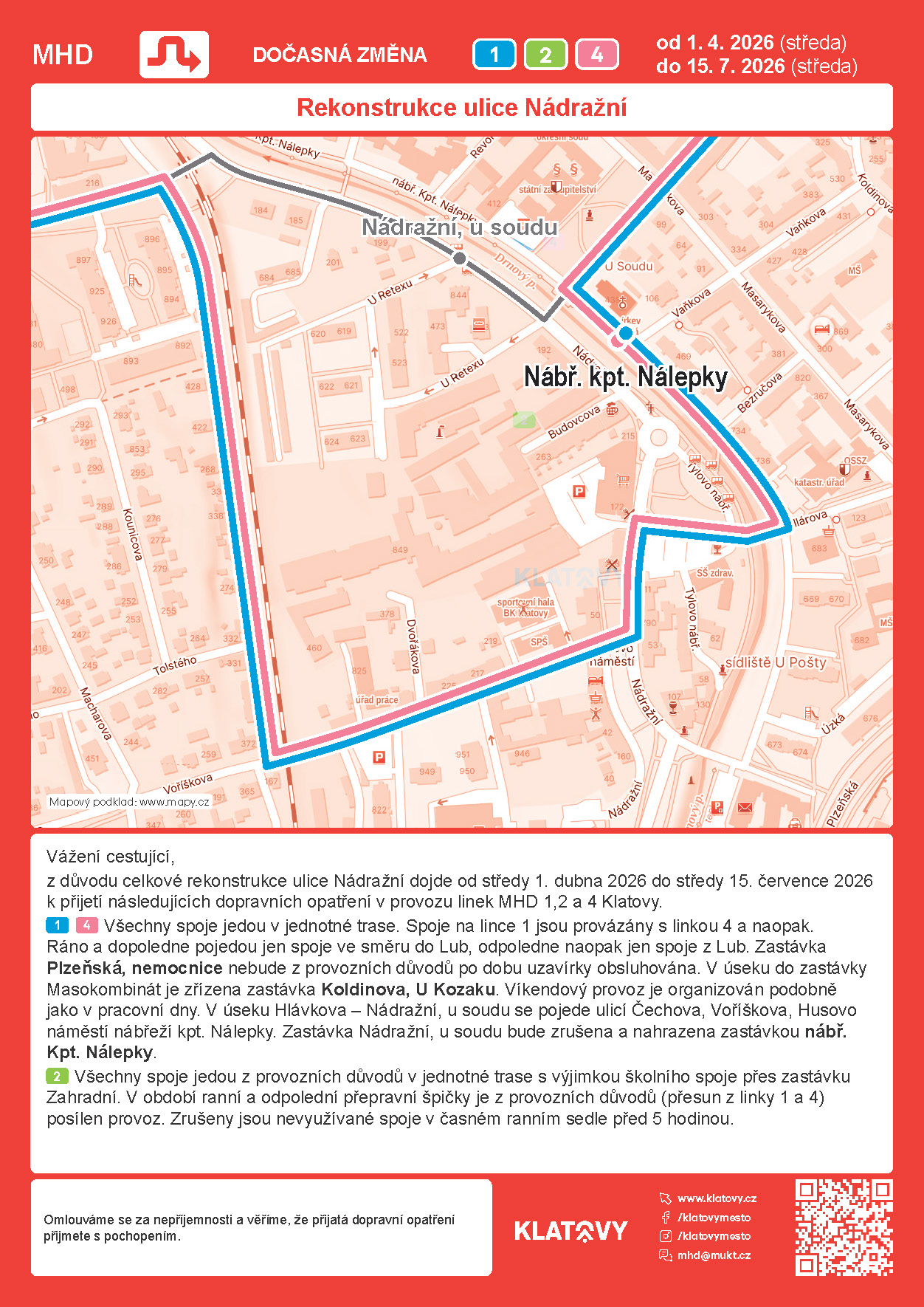 Aktuální jízdní řády MHD v Klatovech - POZOR - od 01.04.do 15.07.2026 - výlukové jízdní řády