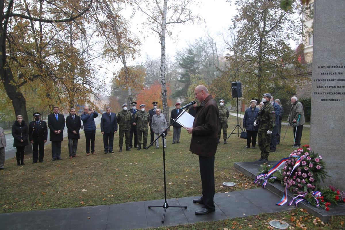 Poklonit se památce těch, kteří obětovali svůj život pro vlast a uctít vznik samostatného Československa přišli ve čtvrtek 28. října 2021 do Podbranské ulice v Klatovech zástupci vedení města, Klubu vojenských důchodců, Tělocvičné jednoty Sokol, vojáků z útvaru 4854 v Klatovech, Konfederace politických vězňů, Policie ČR, politických stran a široké veřejnosti.