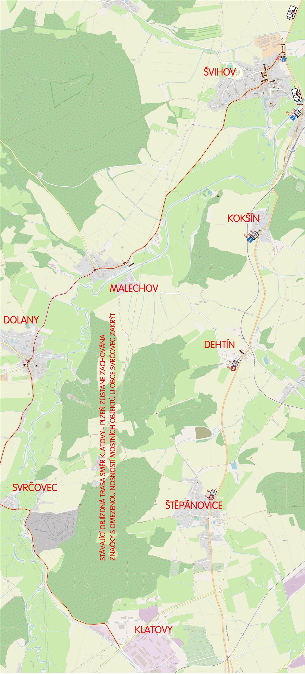V souvislosti s výstavbou průtahu obcí Štěpánovice dojde v termínu od 06.06.2022 do ukončení stavby ve směru od Plzně k odklonění nákladní dopravy nad 3,5 t (mimo BUS) přes Švihov, Malechov, Dolany.