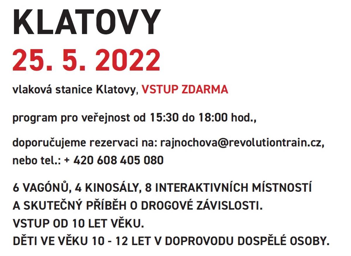 Město Klatovy podporuje cíl a smysl akce Revolution Train a srdečně zve zájemce o danou tématiku nejen z našich škol, ale i z řad veřejnosti.