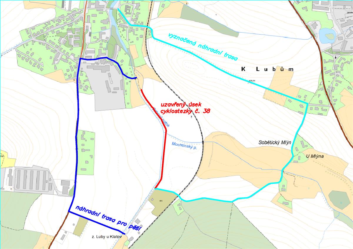 V terénu bude pro cyklisty vyznačena objízdná trasa po místní komunikaci na Sobětice-Sobětičky-místní komunikaci vedoucí k nádraží ČD. Bude možnost využít i trasu ulicí Pod pilou a dále po chodníku podél silnice I/27 ulicí 5. května (pro pěší) a po silnici I/27 (pro cyklisty).