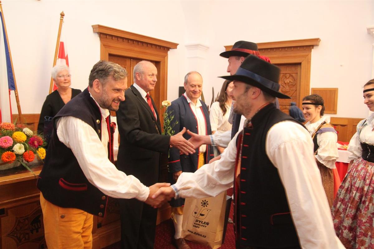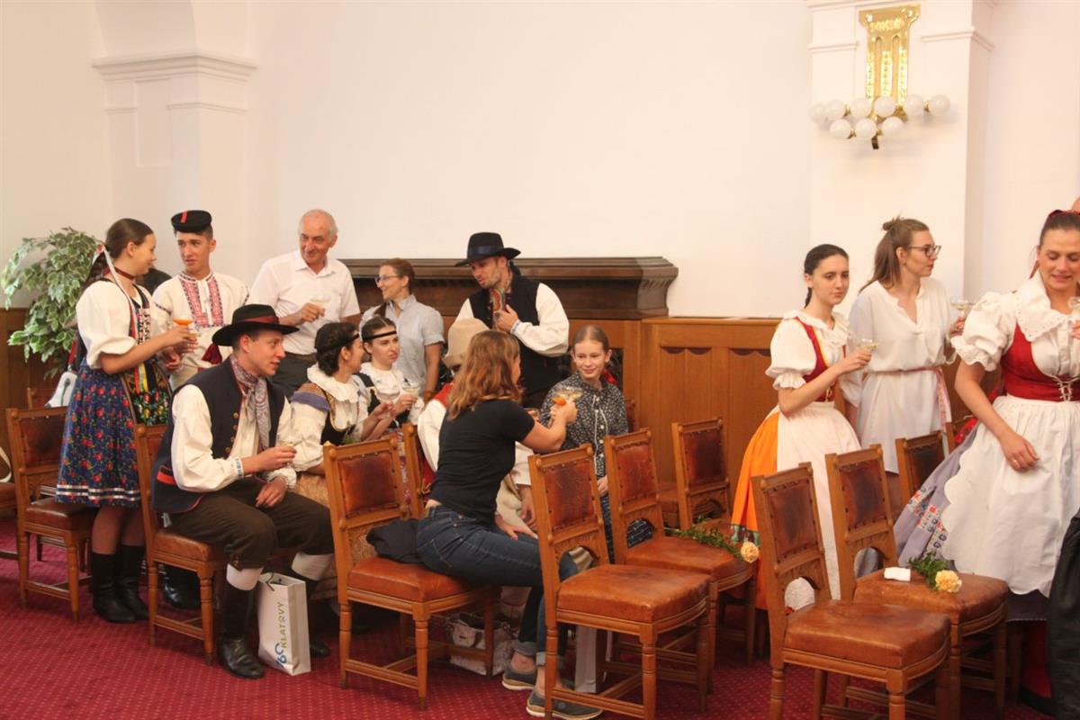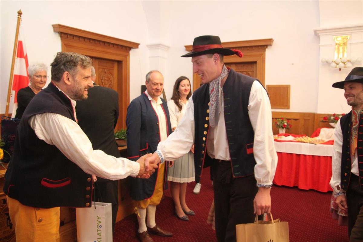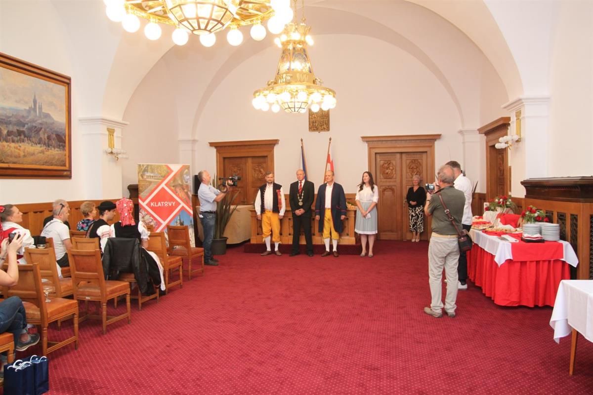 V sobotních dopoledních hodinách slavnostně přivítal na klatovské radnici pan starosta Rudolf Salvetr s pány místostarosty Václavem Chroustem a Martinem Křížem zástupce 6 folklórních souborů.