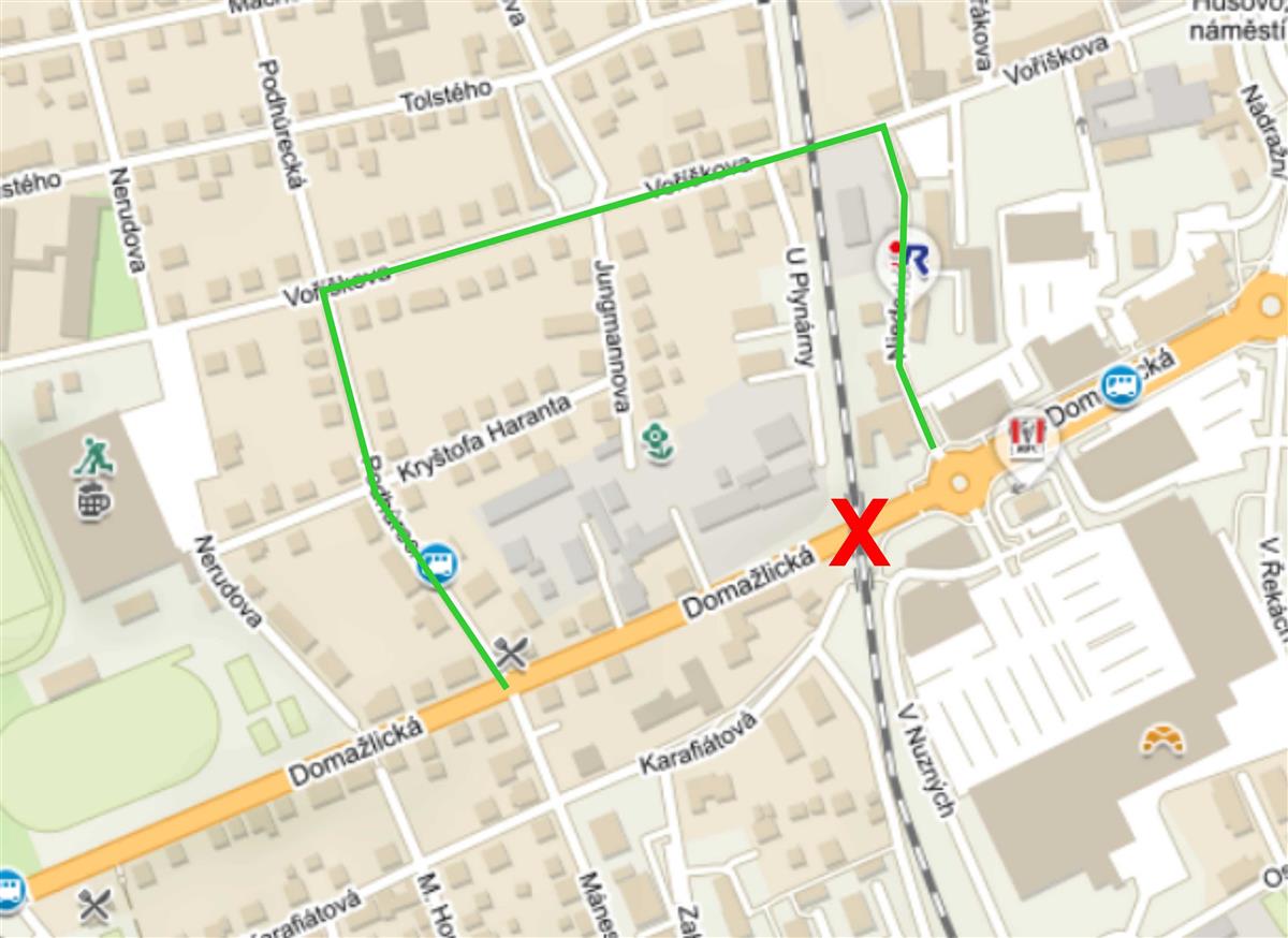 Domažlická ulice pod viaduktem u Tesca je uzavřena