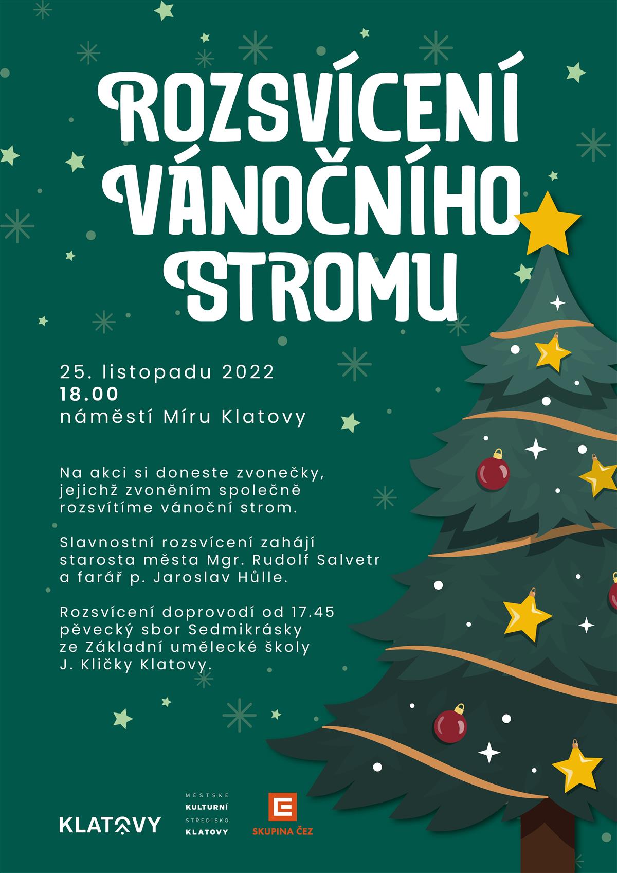 Rozsvícení vánočního stromku proběhne na klatovském náměstí 25. listopadu 2022 od 18:00 hodin.