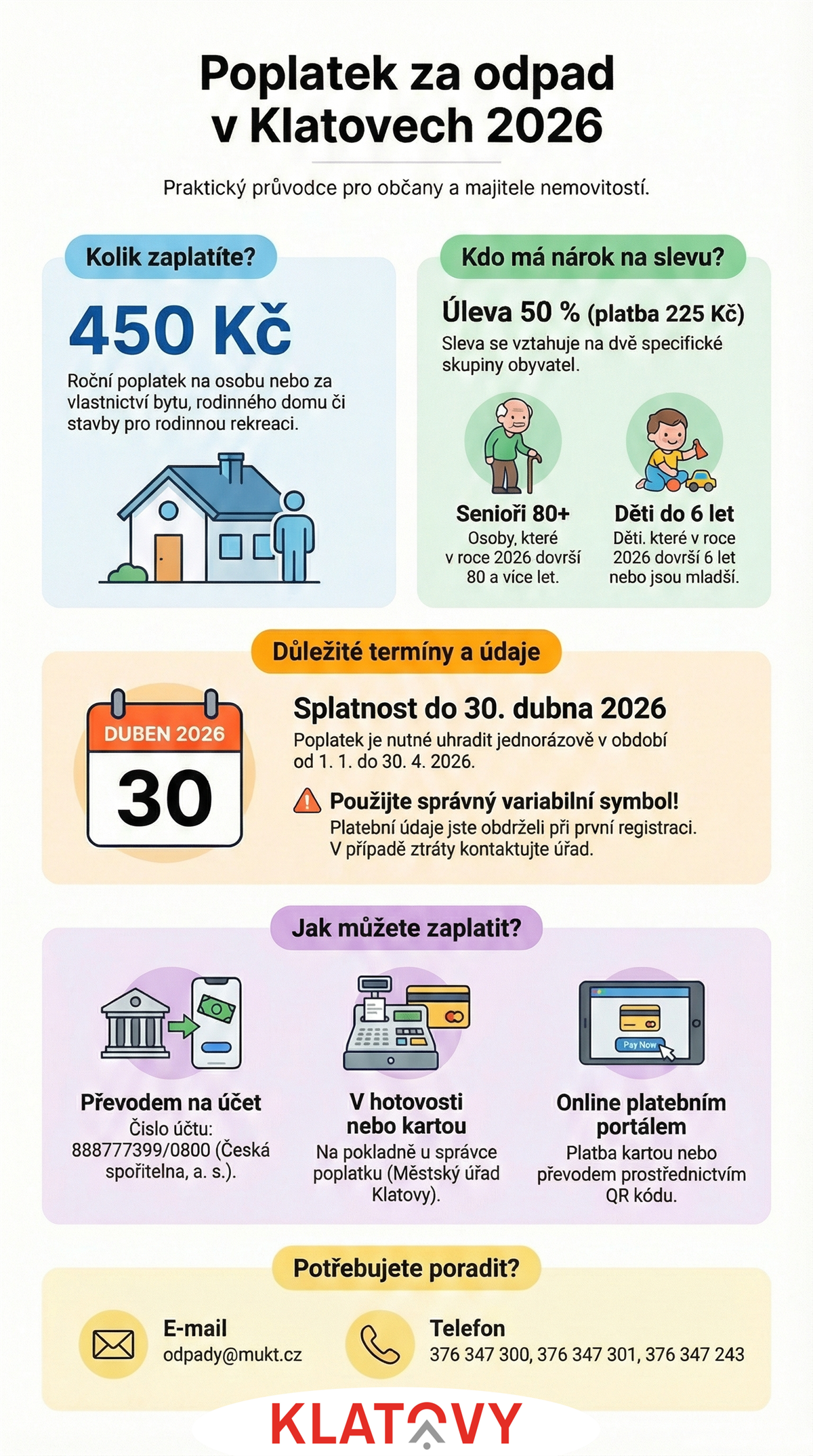 Poplatek za odpad všem občanům (poplatníkům) ve správním území města Klatov v období od 1.1.2026 do 31.12.2026