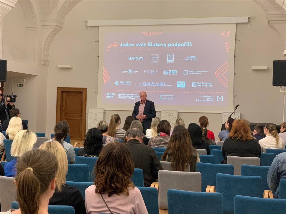 V refektáři jezuitské koleje byl právě zahájen festival o lidských právech Jeden svět Klatovy. Na slavnostní zahájení byl vybrán snímek o válce na Ukrajině - Východní fronta. Festival potrvá v Klatovech až do neděle.