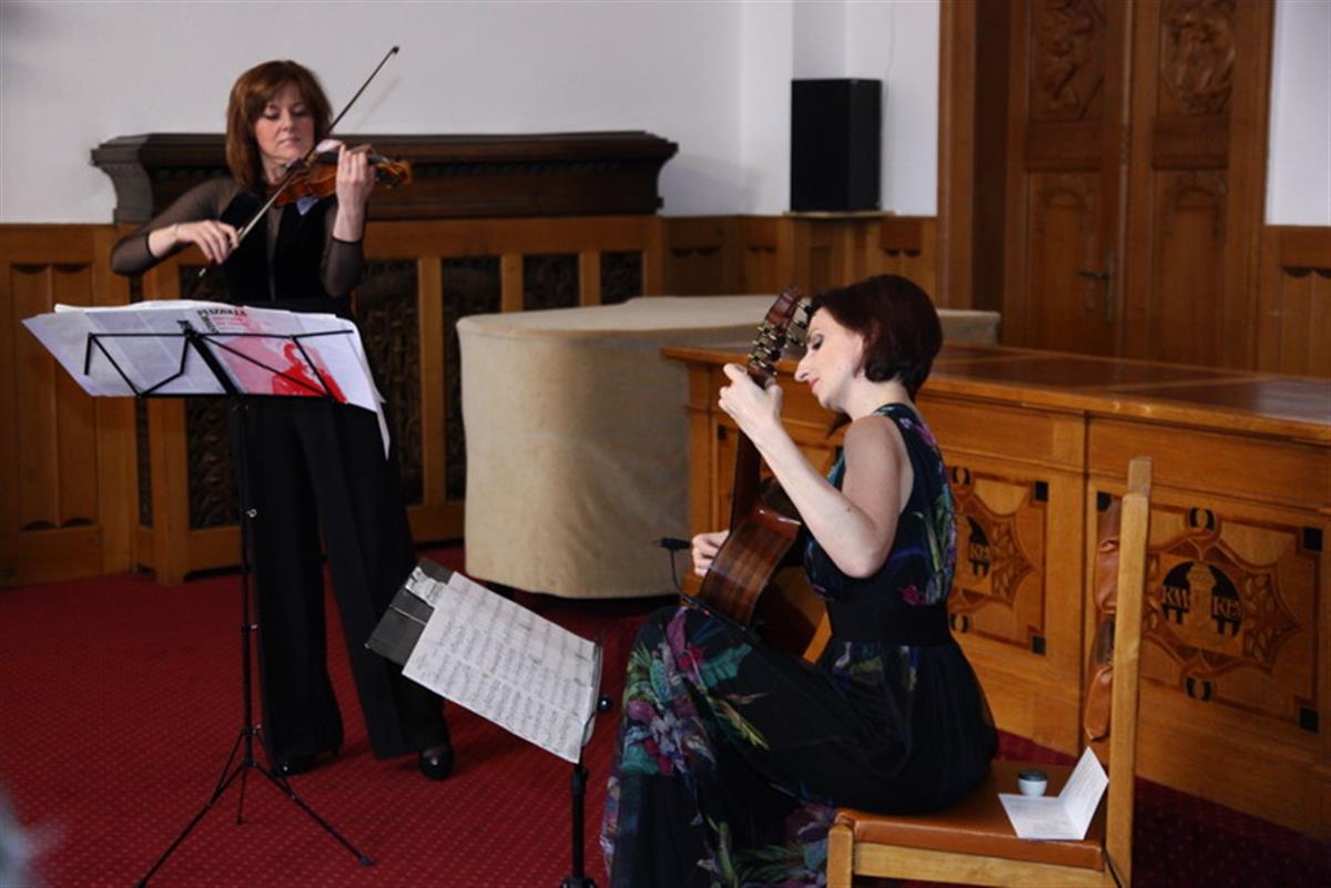 Na klatovské radnici zněly virtuózní skladby v podání polské houslistky Anny Gutowské, kterou na kytaru doprovodila Miriam Rodriguez Brüllová.