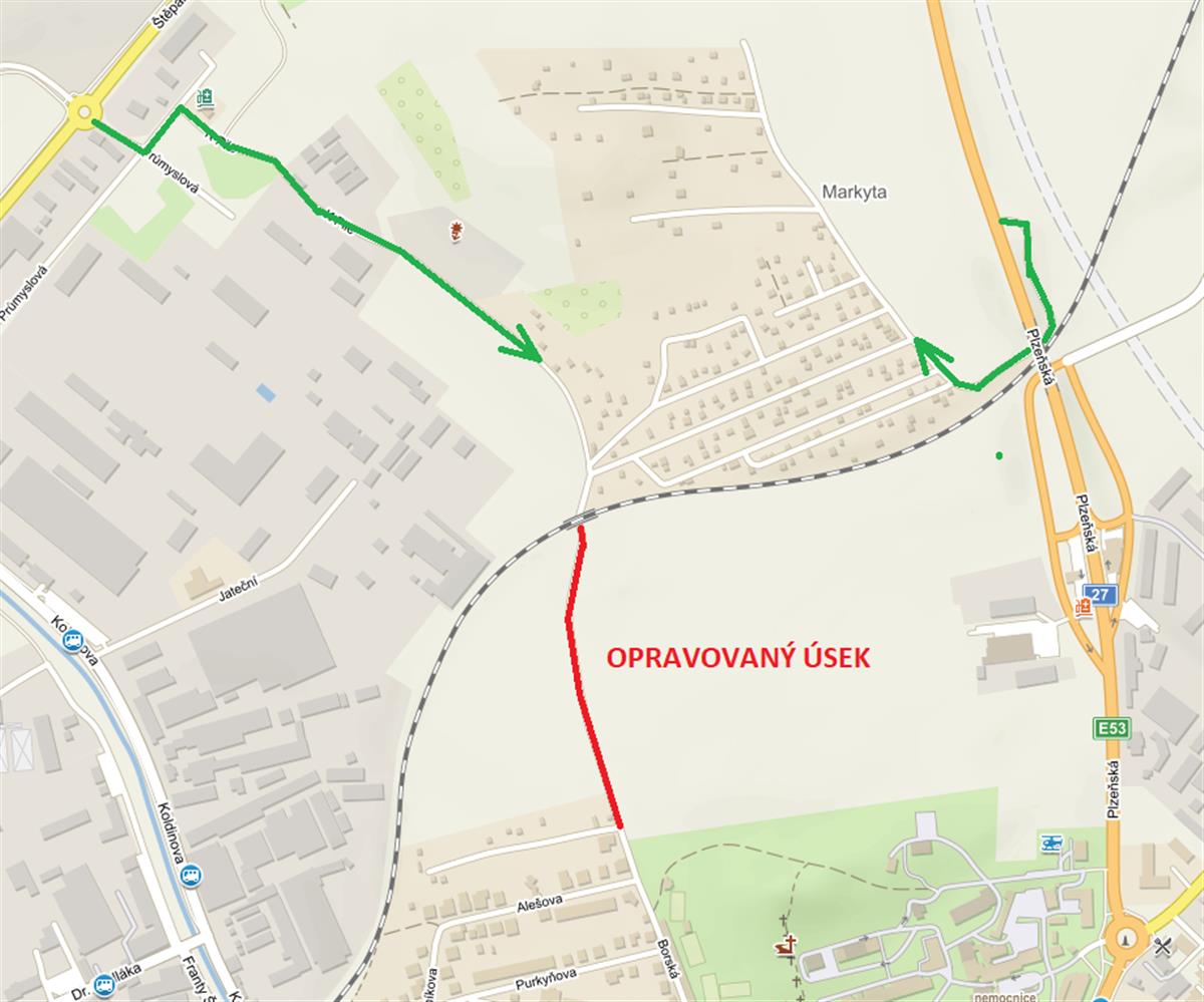 Oprava bude zahájena úpravou krajnic komunikace a poté bude proveden nástřik s podrcením. Termín dokončení je do konce toho týdne, tedy v pátek 26.05.2023 za příhodných klimatických podmínek. K příjezdu do zahrádkářské kolonie v tomto období, prosím použijte výhradně příjezdy od Plzeňské a ulicí K Pile. Omlouváme se za způsobené komplikace.