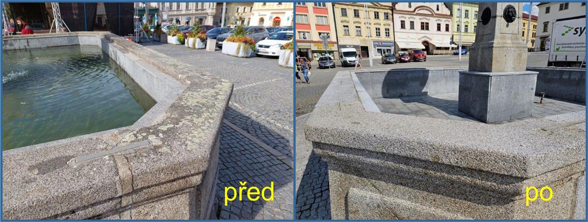 V předešlých dnech proběhlo tlakové čištění žulové kašny na klatovském náměstí a laviček okolo „labyrintu“ za Černou věží. Specializovanou firmou byly nejdříve z povrchů odstraněny lišejníky a řasy, poté následovalo hloubkové čištění. Na závěr byla aplikována speciální nano impregnace. Po nedávné úpravě výsadbové části labyrintu se tak náměstí i jeho okolí stává zase o kousek příjemnějším místem k odpočinku.