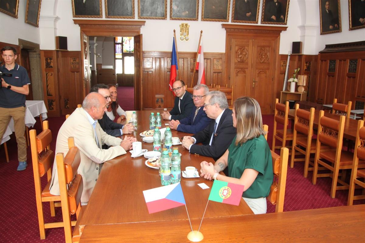 U příležitosti zahájení výuky portugalštiny na Obchodní akademii v Klatovech navštívil v pondělí 11. září 2023 naše město pan velvyslanec Portugalské republiky v ČR J.E. Luís de Almeida Sampaio. Po návštěvě Obchodní akademie přivítal pana velvyslance na klatovské radnici starosta města Klatov pan Rudolf Salvetr. Oba pánové se shodli na tom, že rozšíření nabídky o další cizí jazyk bude pro středoškolské studenty velice přínosné.