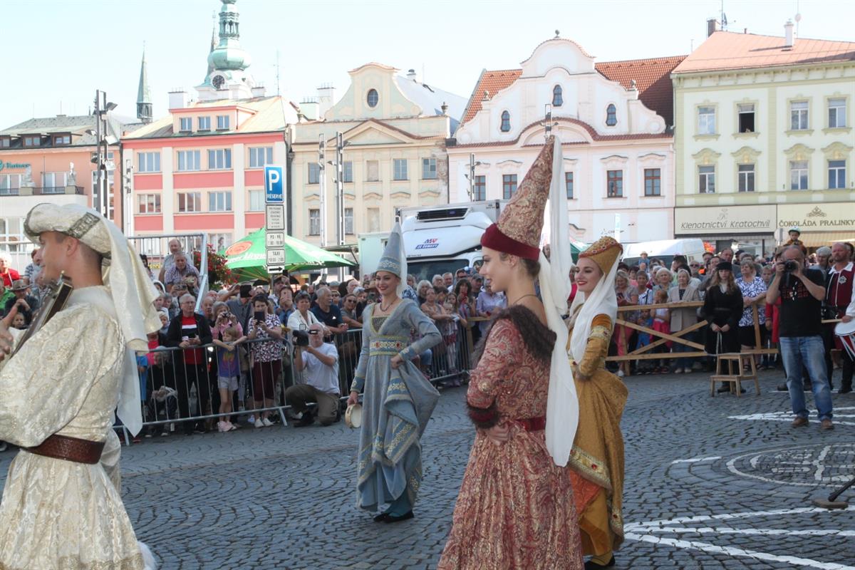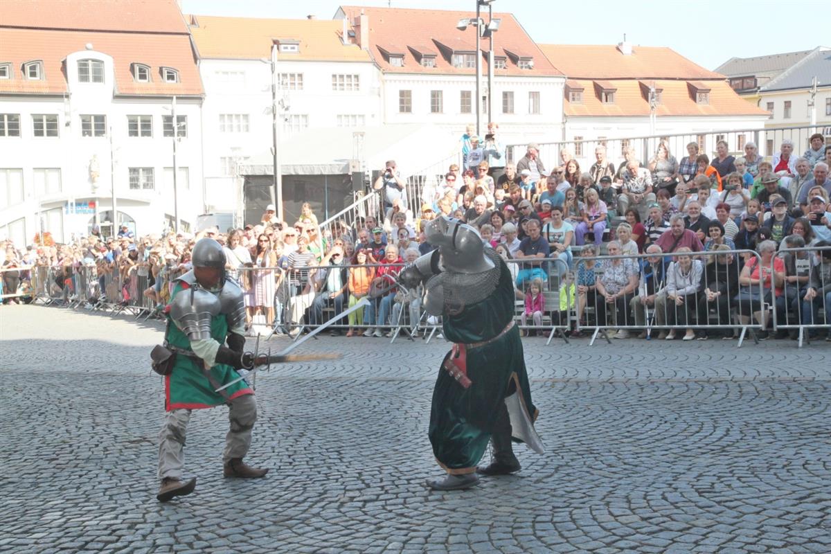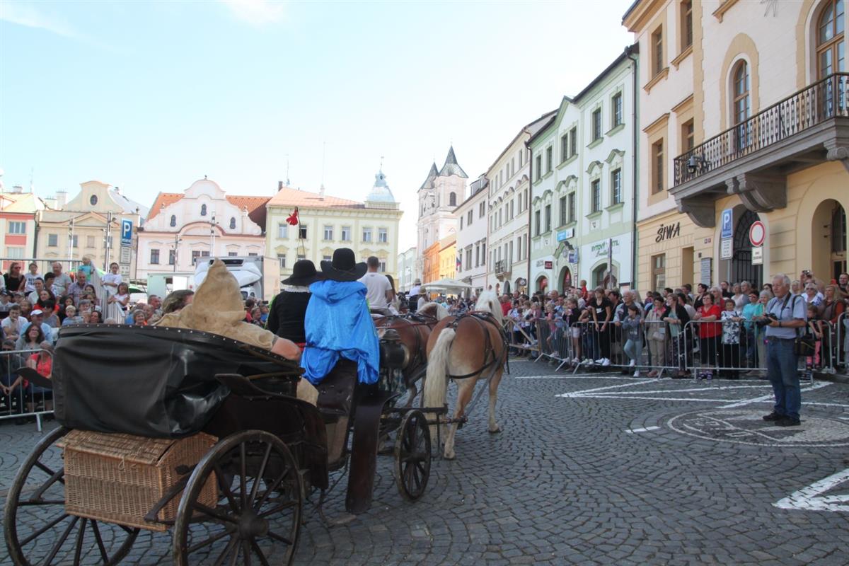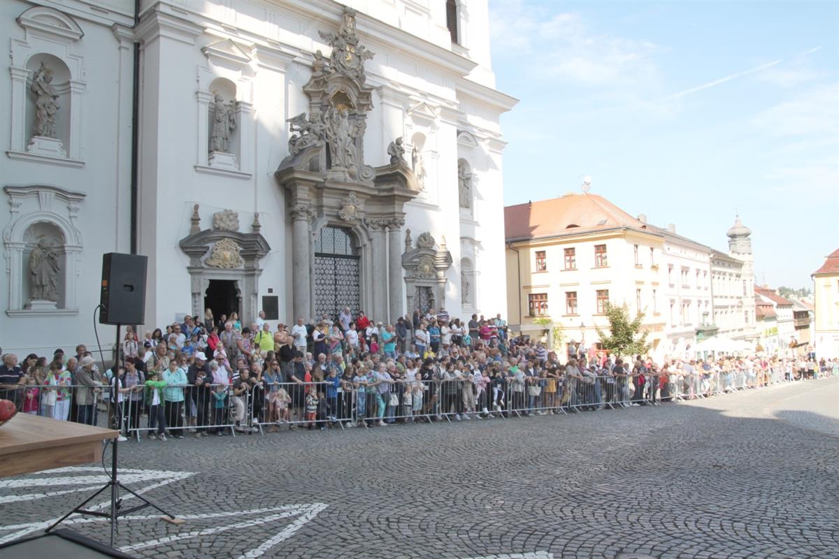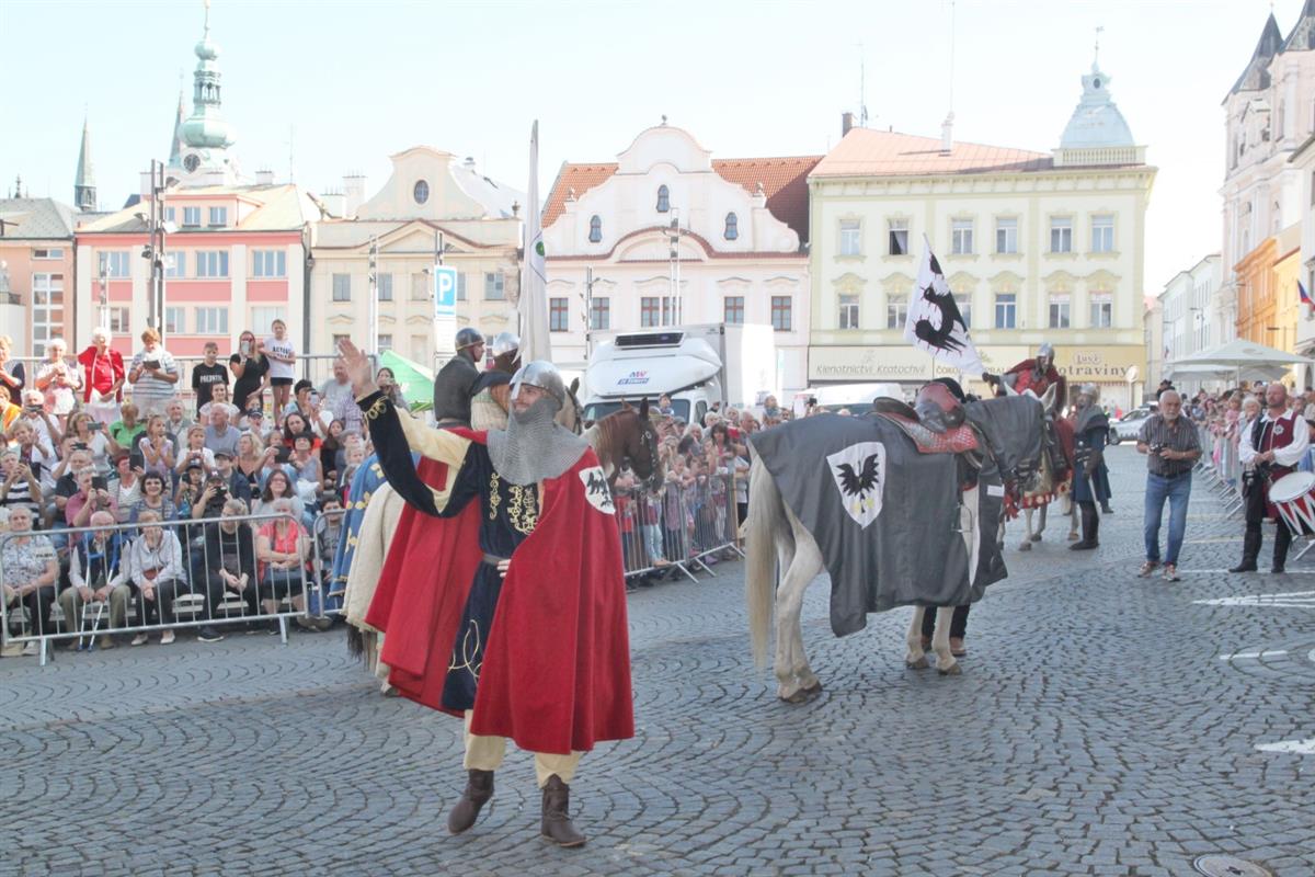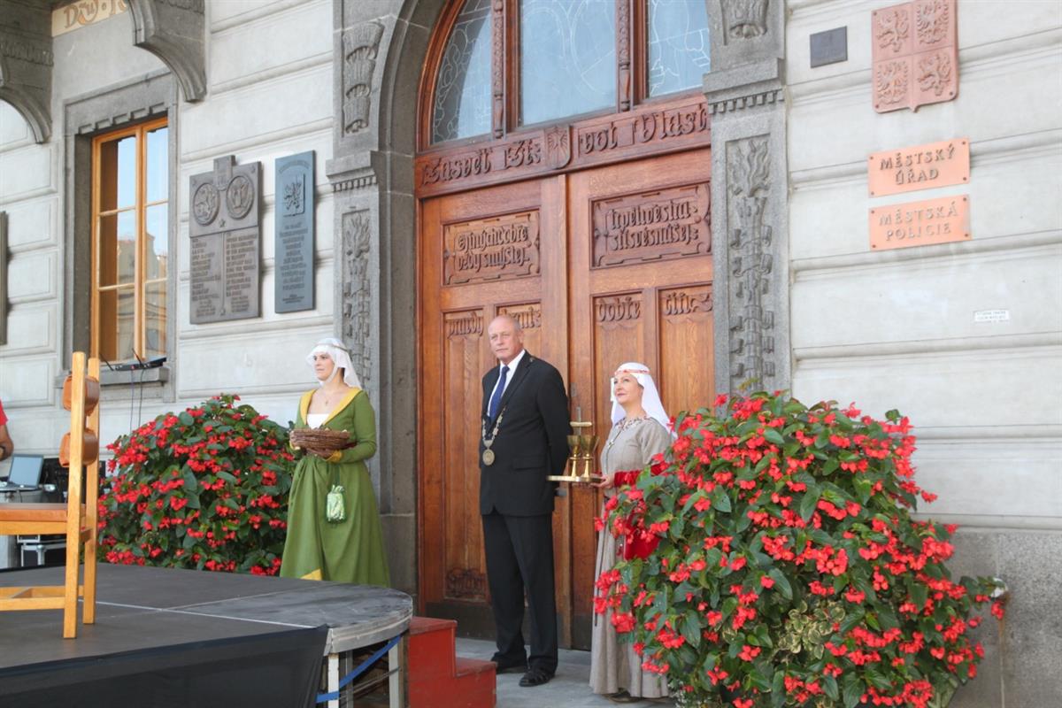 Stovky lidí, které v pravé poledne obklopily náměstí, vítaly za zvuku zvonu Vondra knížete s početnou družinou 🐴. Po napínavém rytířském souboji před radnicí přivítal svatého Václava starosta města Klatov pan Rudolf Salvetr.