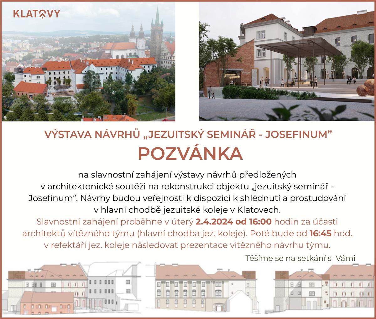 Pozvánka na slavnostní zahájení výstavy návrhů předložených v architektonické soutěži na rekonstrukci objektu „jezuitský seminář - Josefinum”