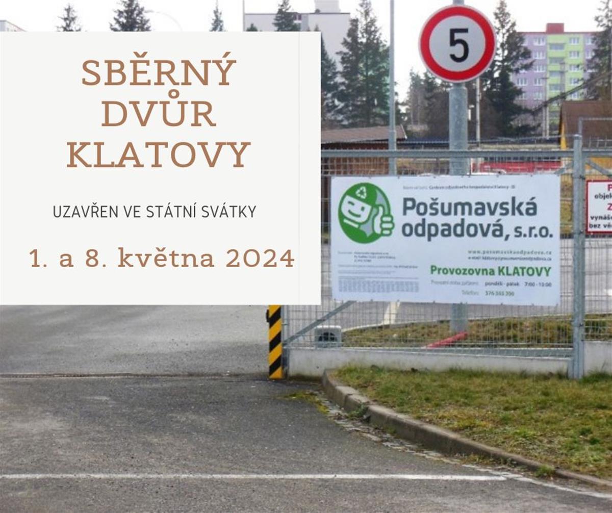 Obsah stránkyKlatovský sběrný dvůr bude ve státní svátky 1. a 8. května 2024 UZAVŘENSubmenu❗️Klatovský sběrný dvůr bude ve státní svátky 1. a 8. května 2024 UZAVŘEN❗️Návrat na předchozí stránku