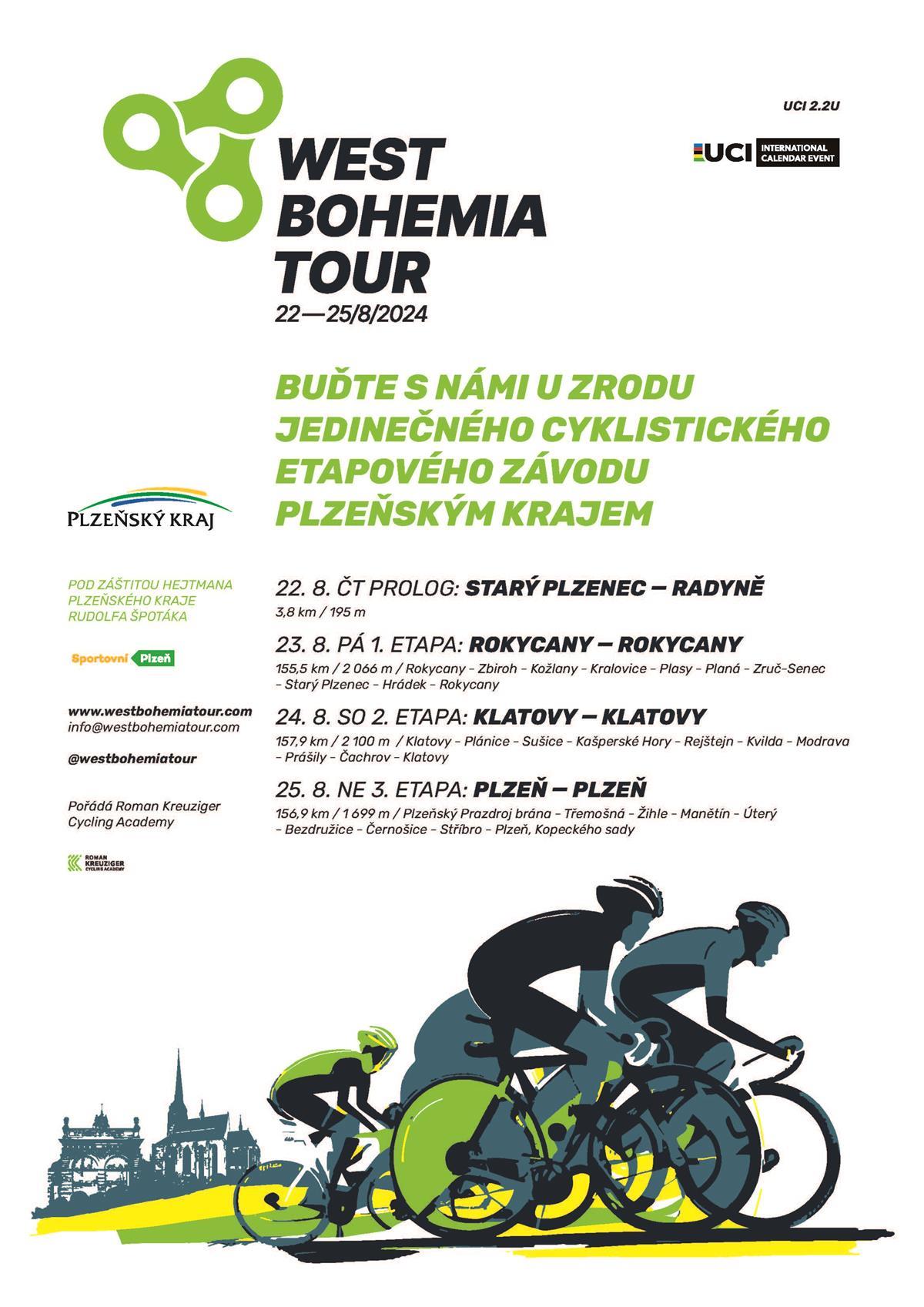Jak jsme již informovali - od čtvrtka 22. do neděle 25. srpna 2024 bude v Plzeňský kraj probíhat jedinečný cyklistický etapový závod West Bohemia Tour.