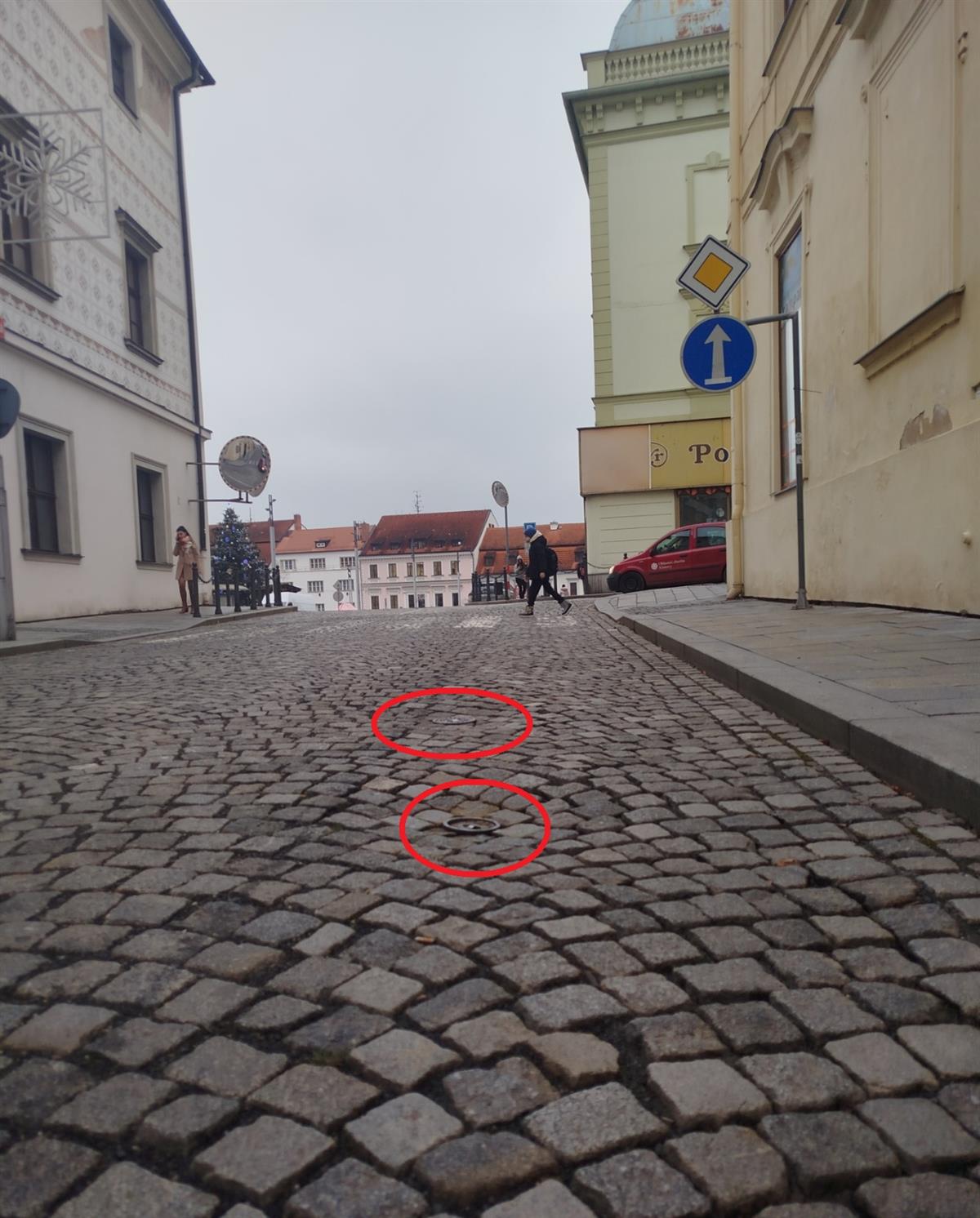 🔹 Jedná se o lokální opravu žulové dlažby kolem propadlých vodovodních a plynárenských poklopů na původní výšku nivelity vozovky.