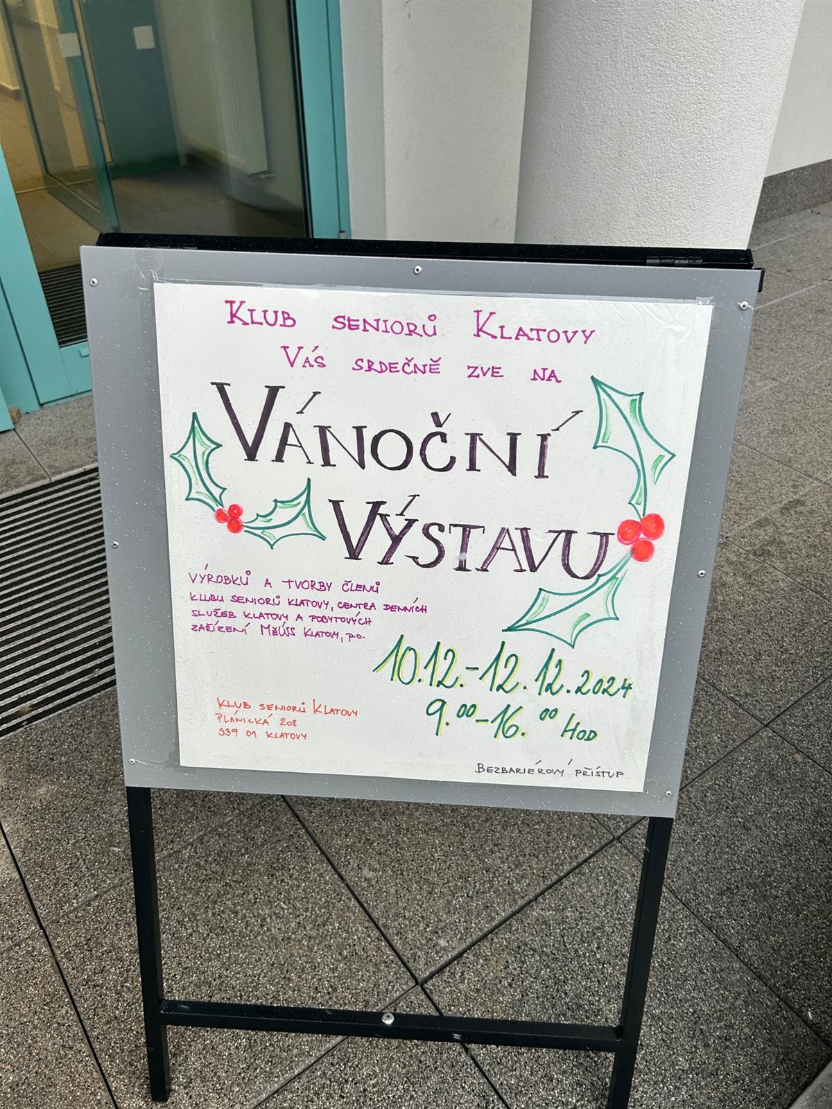 Klub seniorů Klatovy pořádá prodejní VÁNOČNÍ VÝSTAVU, kde si můžete zakoupit 🎁 výrobky členů klubu, Centra denních služeb Klatovy a pobytových zařízení MěÚSS Klatovy.