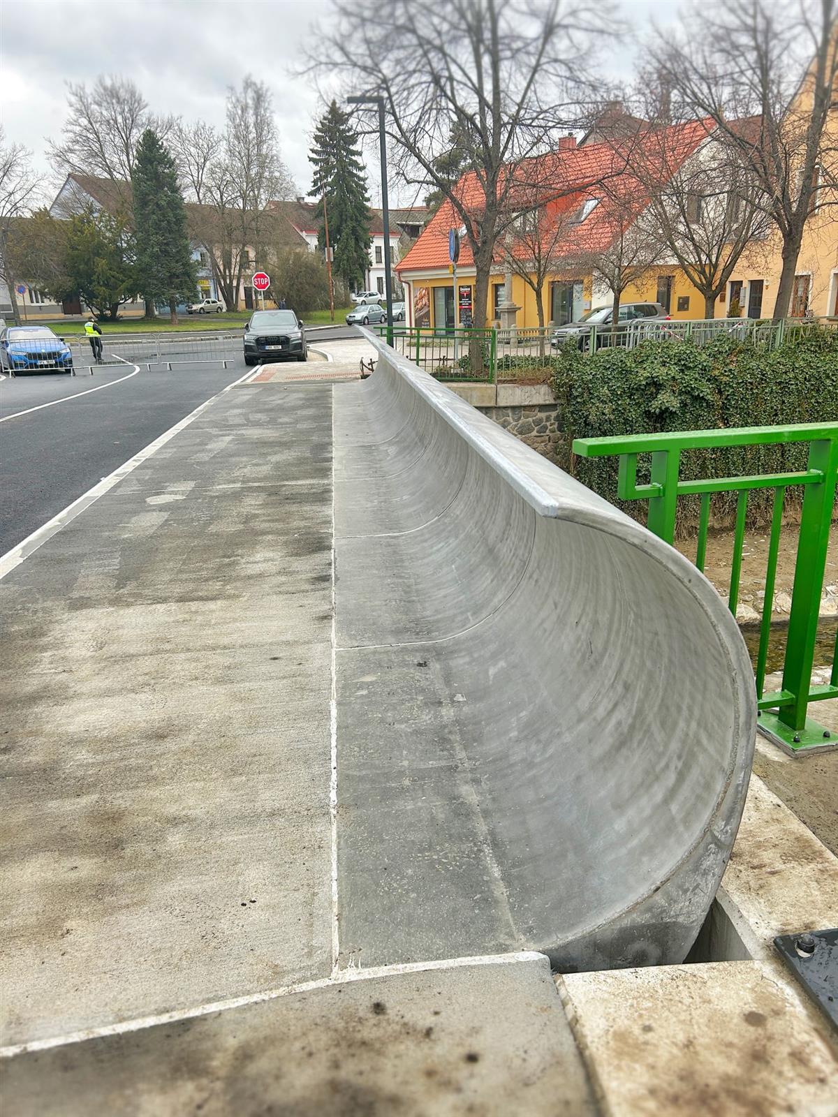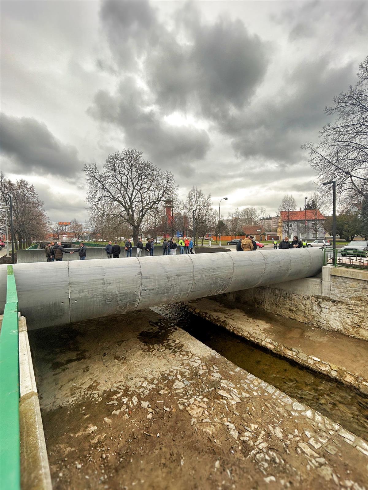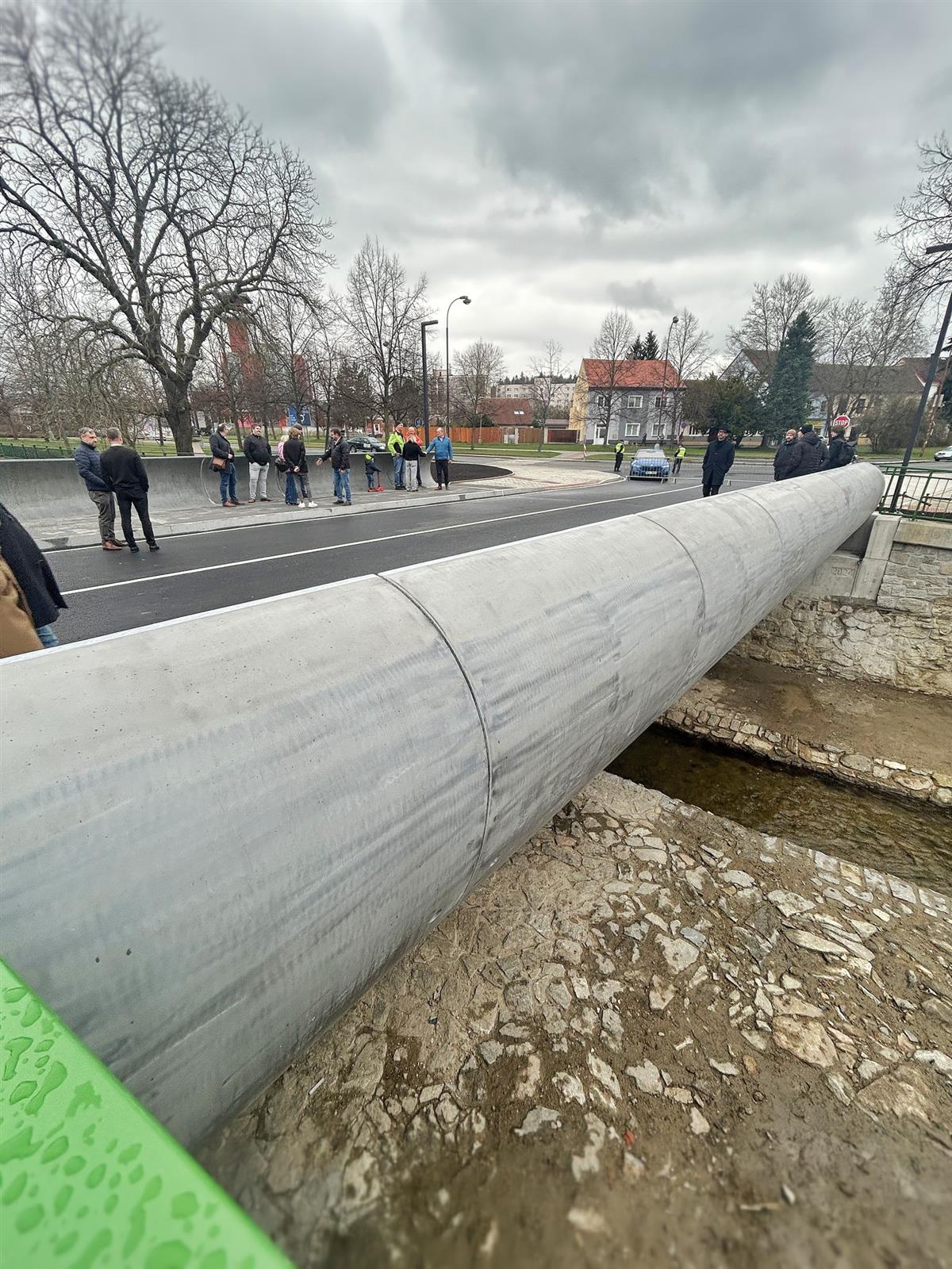 Vodovodní a plynové potrubí, které dříve vedlo po stranách mostu, bylo přeloženo pod koryto Drnového potoka, což přispívá k lepší estetice i funkčnosti celé stavby. 🌊🔧