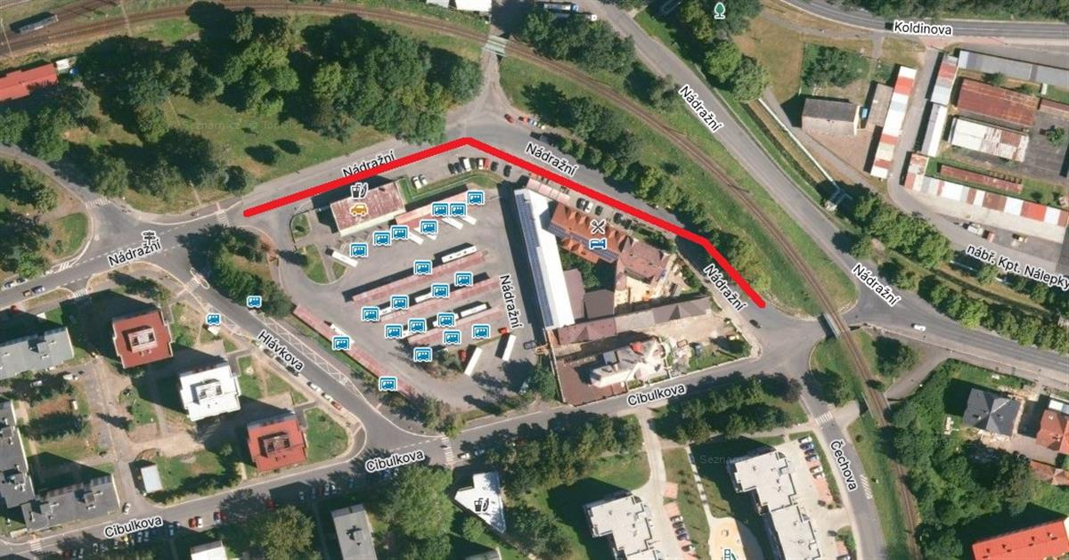 Od pondělí 7. dubna 2025 začne rekonstrukce Nádražní ulice v úseku Cibulkova – Hlávkova (od viaduktu po vjezd do autobusového nádraží).